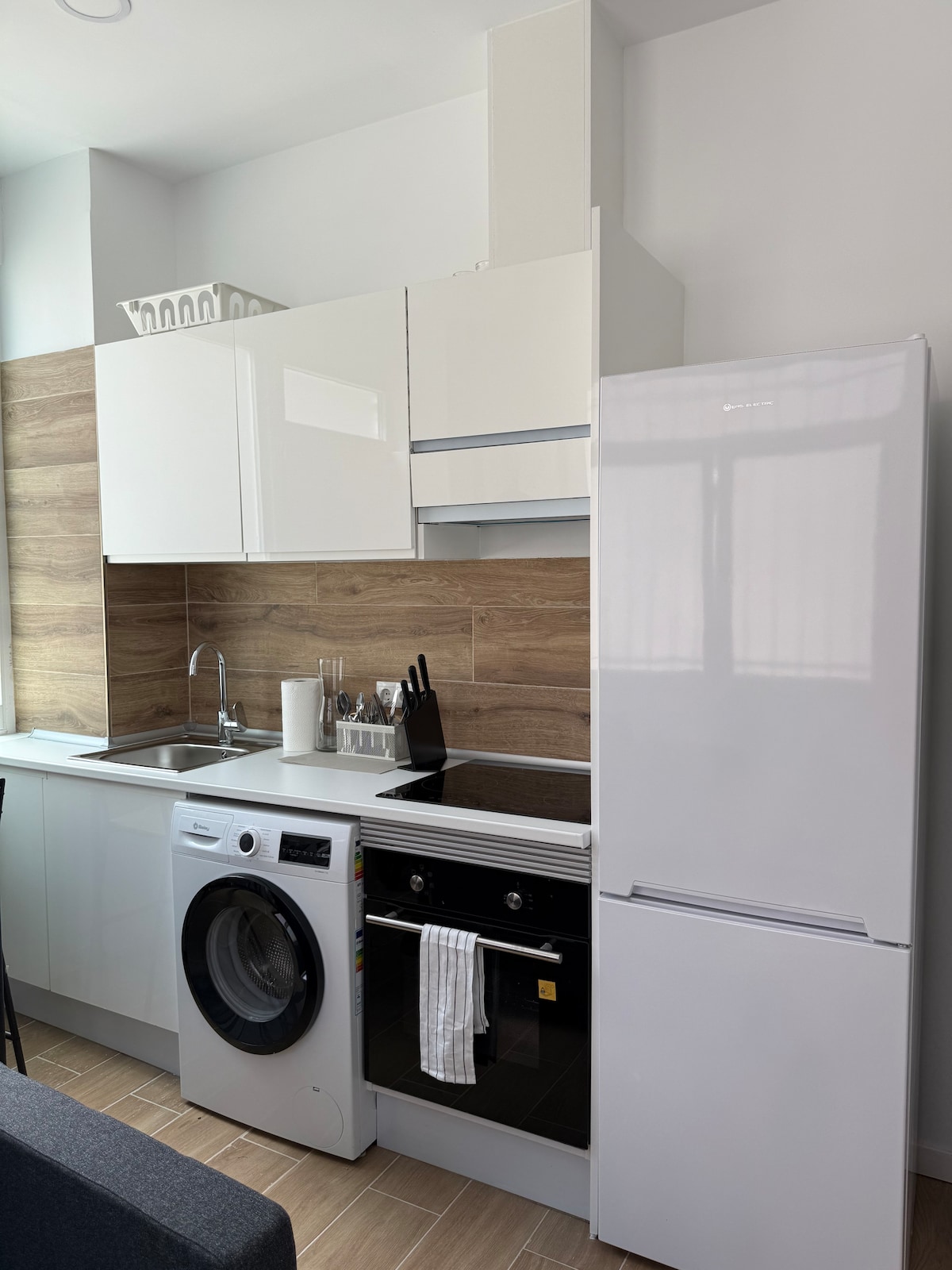 Notaleg og notaleg loftíbúð á jarðhæð fyrir einn eða tvo í daga, vikur eða mánuði. Kyrrlát staðsetning með stóru stöðuvatni í aðeins 5 mínútna göngufjarlægð. Náttúruleg birta, fullbúið eldhús, baðherbergi og sturta, 135x200 cm rúm, snjallsjónvarp og loftkæling til upphitunar og kælingar. Innifalið þráðlaust net, rafmagn og vatn. Góð tenging við vega- og almenningssamgöngur (nálægt neðanjarðarlest) er auðvelt að leggja.