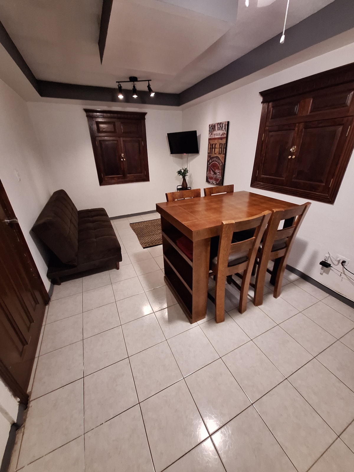 Cómodo y confortable, cuenta con una recámara amplia con cama matrimonial, baño con agua caliente, mini split frío/calor, frigo bar, cafetera eléctrica y horno microondas para que su estancia por turismo ó trabajo sea como si estuviera en casa. El internet inalámbrico y Smart TV también están disponibles para que tu estancia sea completa, si tienes tu cuenta de Netflix puedes configurarla para que disfrutes de tu aplicación, si necesitas asistencia puedes contactarme con toda confianza.