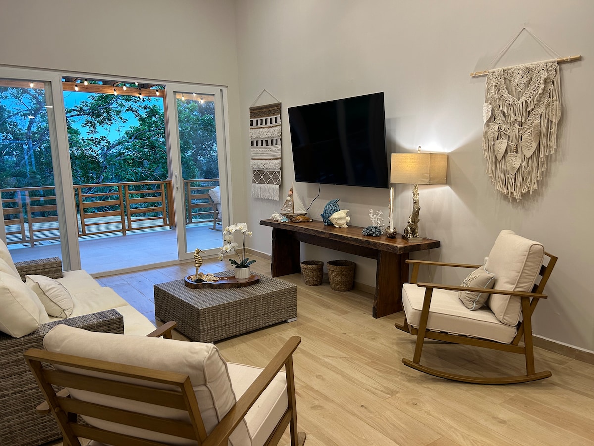 Þessi eign er með eigin stíl og einstakar innréttingar sem bjóða upp á öll þægindin sem þarf til að gera ströndina að heimili þínu. Það er búið rafal, hreinsuðu vatni,rúmum og koddum sem eru hannaðir fyrir hámarks hvíld. Svalir með mögnuðu útsýni yfir hafið og greiðan aðgang að þægindum á borð við veitingastaði og matvöruverslanir. Í sameigninni erum við með tvær sundlaugar og tvö hengirúm til að tryggja að dvöl þín verði mögnuð upplifun. Parqueo para 2 bílar