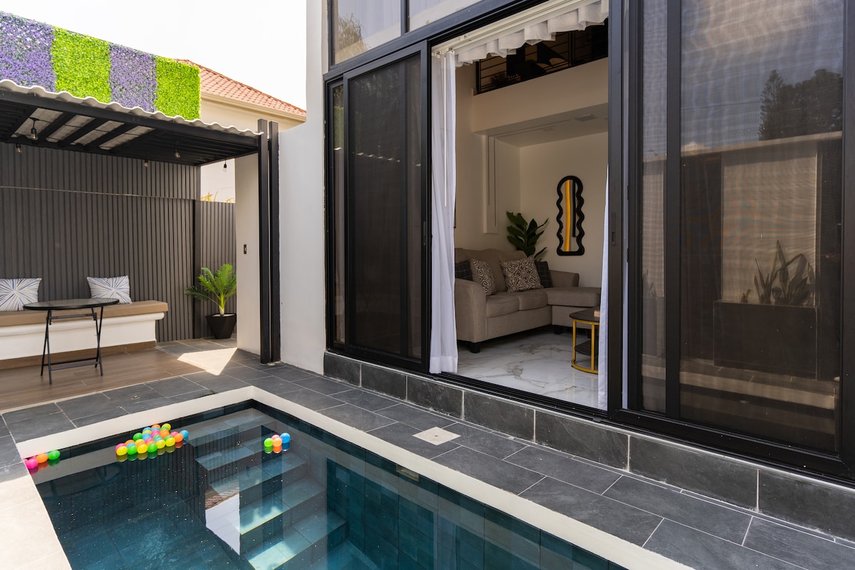 Nútímaleg loftíbúð með einkasundlaug sem er tilvalin fyrir einstakt frí til að slaka á og njóta kyrrðarinnar. Gersemi þessarar risíbúðar er einkasundlaug þar sem þú getur kælt þig niður í algjöru næði. Með fullbúnu eldhúsi, þvottahúsi, loftræstingu og þráðlausu neti tryggir það þægilega og einstaka gistingu. Fullkomið fyrir pör, ferðalanga sem eru einir á ferð og leita að nútímalegum stað með greiðan aðgang að mikilvægum stöðum borgarinnar. ! Komdu og upplifðu gistinguna á einstökum stað!
