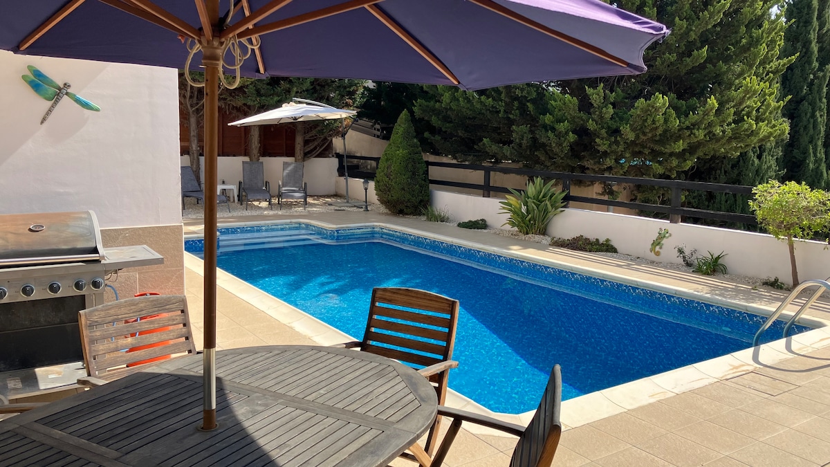 Vaknaðu við friðsæla morgna þar sem sólin málar sjóndeildarhringinn í gulli. Einkavillan okkar býður þig velkomin/n í friðsælan heim þar sem lífið hægir á sér og streitan hverfur með hverjum andardrætti. Slakaðu á við útsýnislaugina og náttúrufegurð Kýpur teygir sig á undan þér. Þegar skyggni fellur skaltu slökkva ljósin og láta stjörnurnar lýsa upp himininn. Bara hvísla í burtu frá töfrandi ströndum Miðjarðarhafsins, húsið okkar er ekki bara afdrep – það er griðastaður ógleymanlegra upplifana