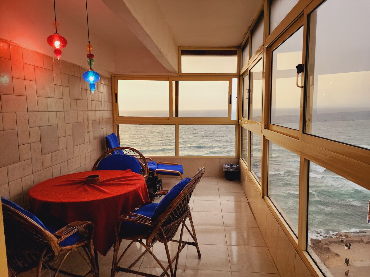 Þetta einstaka heimili hefur sinn eigin stíl. Það er 100 metra frá ströndinni og býður upp á ókeypis Wi-Fi, nálægt elstu konungshöll Egyptalands (Ras Al-Tin höll), frægasta kastalanum í Alexandríu (Qaitbay), Vatnsminjasafninu, Jarðfræðisafninu, Gríska klúbbnum, Snekkjuklúbbnum, gömlu Alexandríu-austurhöfninni, moskubyggingunni og stærsta og ódýrasta markaðnum í Alexandríu (Al-Midan markaðnum), allt í göngufæri og 10 mínútna samgöngum frá Grísk-rómverska safninu og við hliðina á elstu götu í heimi sem heitir (Fouad gata) og 20 mínútum frá miðbænum, Obelisk og Kom El Shouafa gröfunum.