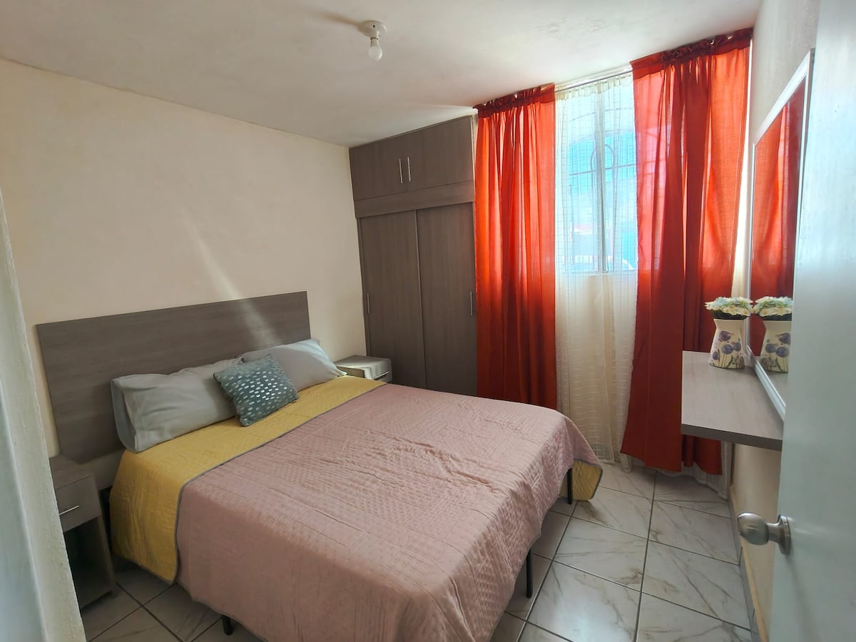 Þægileg og örugg gisting á norðurhluta borgarinnar með reikningsmöguleika. Íbúð á þriðju hæð sem er tilvalin fyrir vinnuferðir, viðskipti eða borgarheimsóknir. Það veitir þér þann hugarró sem þú þarft eftir vinnudaginn eða fundinn. Það er með bílastæði, öryggismyndavélar, hröðum þráðlausum nettengingum, tveimur svefnherbergjum, fullbúnu baðherbergi, búnaðaríku eldhúsi og sjálfstæðum aðgangi allan sólarhringinn. Staðsetning: 5 mín. Benito Juárez iðnaðarsvæði, 12 mín. Querétaro 2000 Park, 25 mín. Sögulegt miðstöð