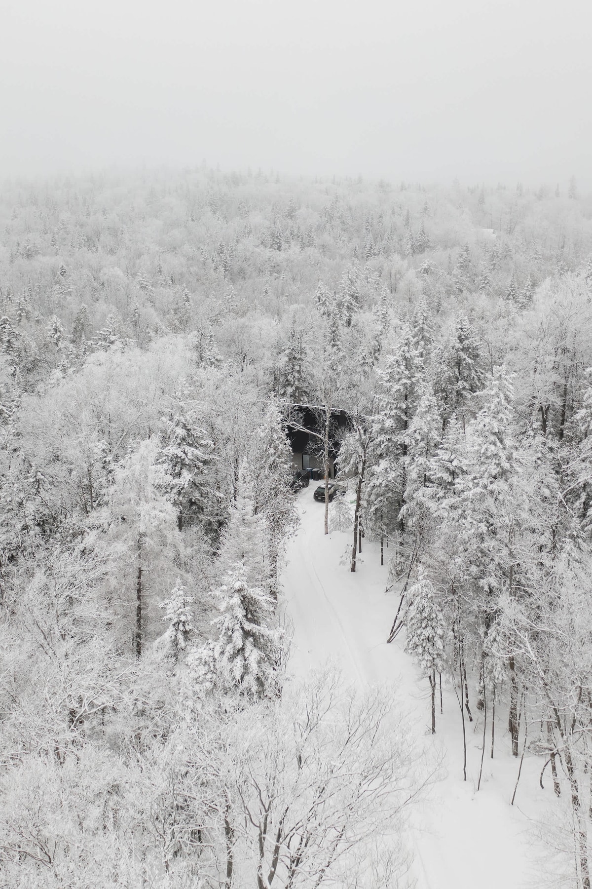 Contact Us for On-going Promotion! Unique & Secluded all White Glass Treehouse with Breathtaking Mont-Tremblant mountains views! The cabin is majestically glazed architectural space combining natural simplicity and contemporary luxury, 10 min from village of Mont-Tremblant, Ski Tremblant. Nestled on the end of the cliff with a fully glazed living space, Bathtub with view, The Panoramic terrace & Private hot tub for an unparalleled relaxation experience in Laurentians. Canadian Renowned Designer.