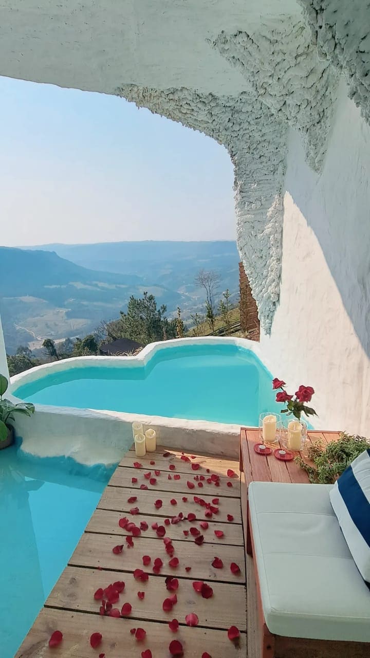 Fullkominn staður fyrir þá sem eru að leita að notalegu andrúmslofti, stórkostlegu útsýni og njóta staðar með miklum friði og fersku lofti. Gistingin er með ótrúlegt vatnsnudd með litameðferð sem þú getur slakað á og átt einstakar og ógleymanlegar stundir. Það er með arni og gólfeld til að hita upp á kaldari dögum. Það er endalaus sveifla fyrir þig að taka ótrúlegar myndir 😍 Og til að loka með gylltum lykli er enn ljúffengur morgunverður þegar innifalinn í daglegu verði 🤤😋