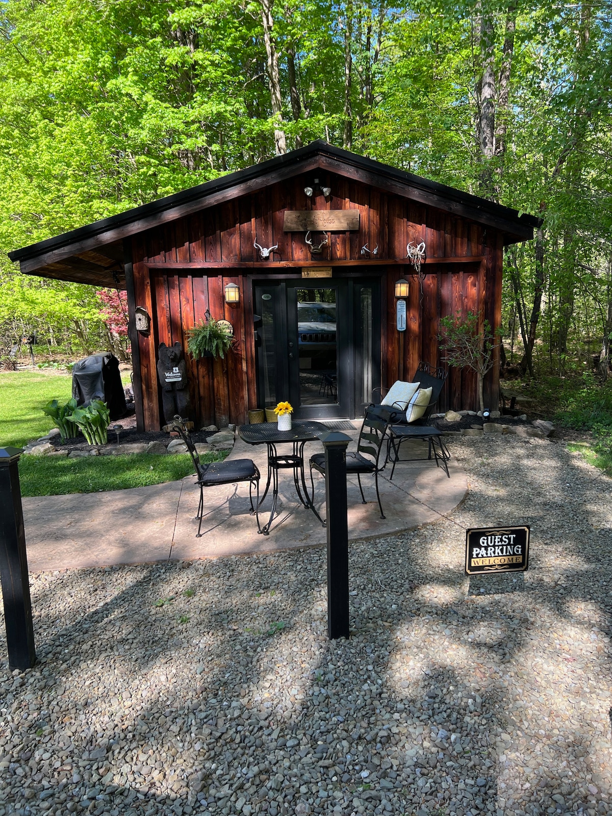 Slakaðu á og slakaðu á í friðsæla og notalega rýminu okkar. Við erum með skóglendi sem umlykur bakhlið og hlið hússins. Komdu og njóttu hlýlegs elds í skóginum undir fallegu Hemlock trjánum sem og gufukennda heita pottinum sem er undir pergolunni okkar fyrir aftan húsið. Ekki fara án þess að upplifa hinn fallega Allegheny-þjóðskóg sem umlykur okkur í Warren-sýslu! Sumarið er svo gróskumikið og grænt með margs konar útivist! Við vonumst til að sjá þig!☀️🌿