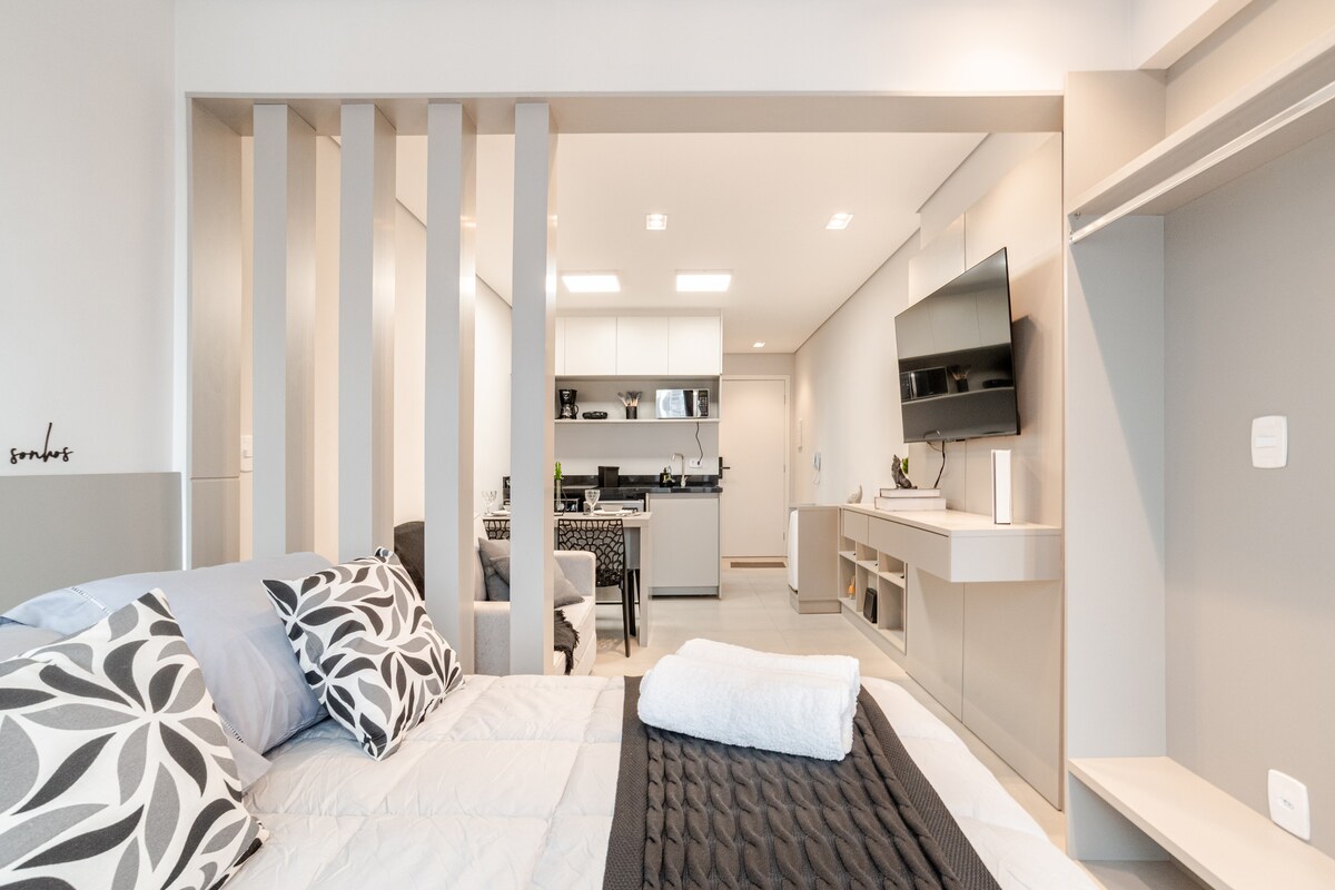 Brand new apartment, with a contemporary style, of a high standard and very well located, with a privileged view of Allianz Parque. Next to shopping malls, various businesses, means of transport, parks, tourist attractions and business buildings. The studio is complete, with a comfortable queen bed, Smart TV and Internet. Kitchen with all utensils, cooktop, refrigerator and microwave. With parking (rotary). Close to everything, cozy, perfect for experiencing fantastic moments.
