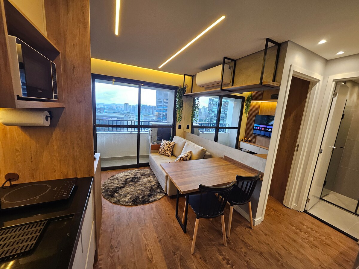 Ný og notaleg íbúð. Njóttu glæsilegrar upplifunar á þessum vel stað fyrir framan Allianz Parque. Við hliðina á nokkrum verslunum, samgöngum, almenningsgörðum, verslunarmiðstöðvum, áhugaverðum stöðum og viðskiptaferð. Njóttu nútímalegrar íbúðar með Queen hjónarúmi, svefnsófa, eldhúsi, örbylgjuofni, sjónvarpi, alexa og mörgum öðrum þægindum. Íbúðin er innréttuð og innréttuð sem skapar þægilegt og notalegt umhverfi. Auk frábærra innviða og góðrar staðsetningar.