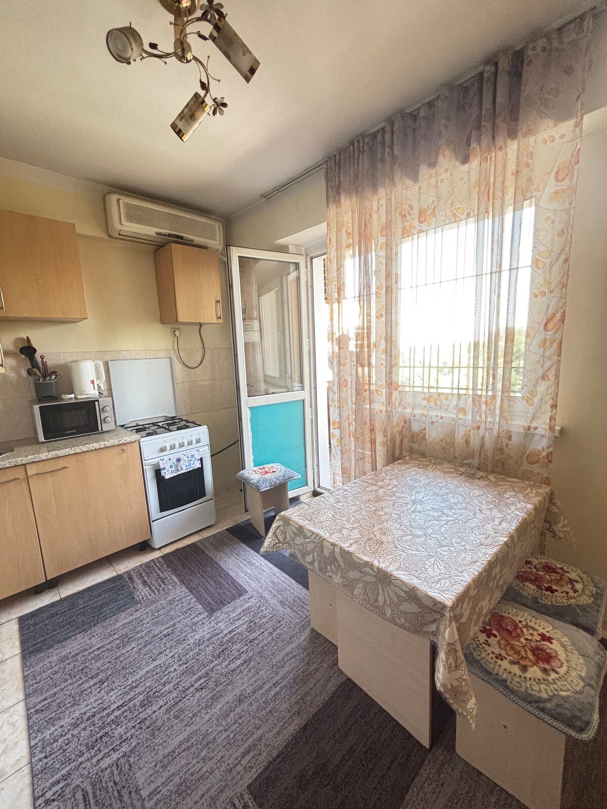 Have fun in our cozy and stylish place. Modern and functional studio in Almaty city for 2-4 people. Infants and children friendly. Newly refurbished entire place has everything you need for your convenient stay. The apartment has fully equipped kitchen, Wi-Fi and all needed amenities. The apartment is located next to the big shopping mall with an array of restaurants, cafes, with supermarket. The main City Walking street is in 10 minutes by walk.