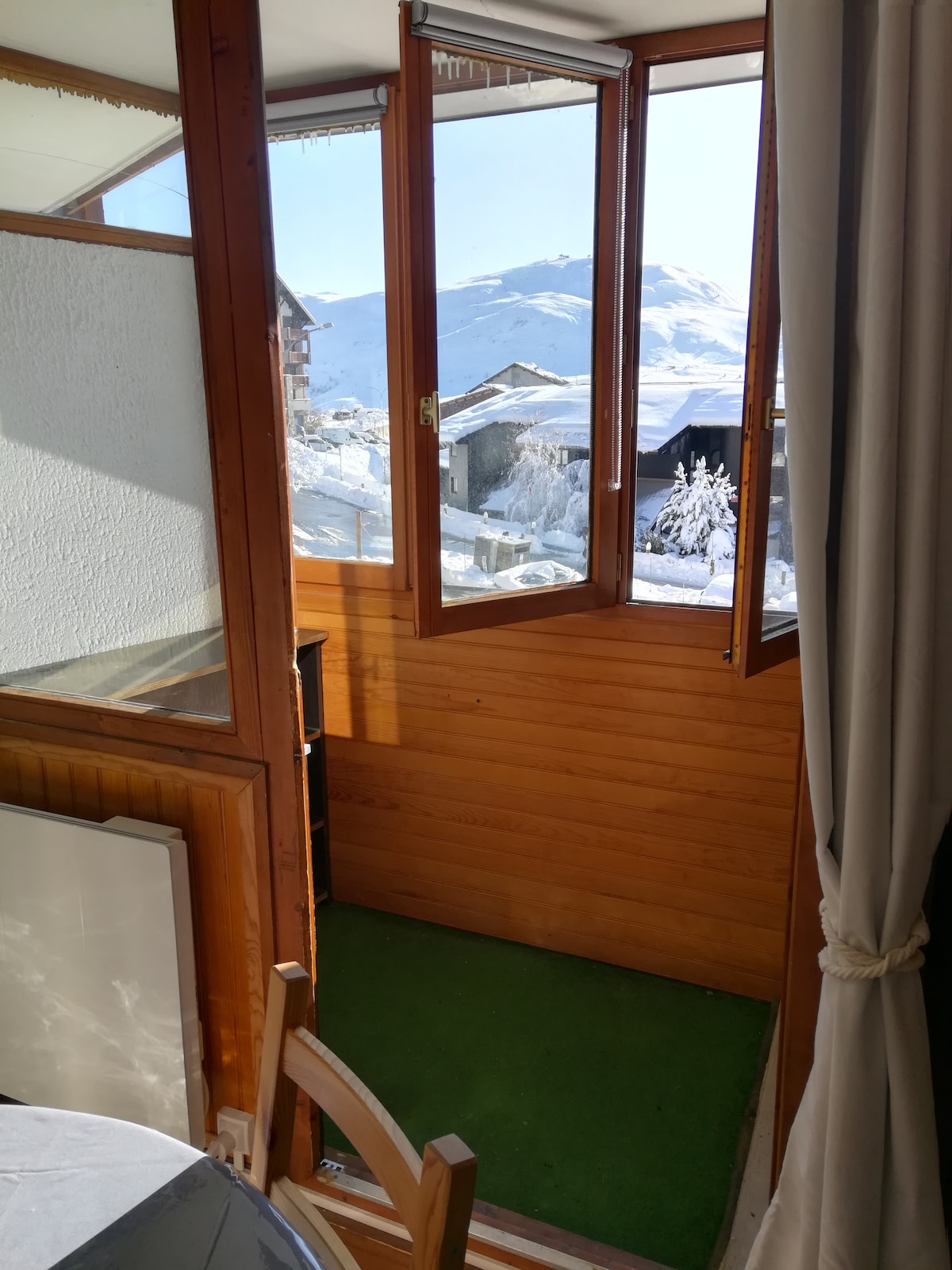 Mjög bjart stúdíó fyrir 4 manns staðsett á jarðhæð í rólegu húsnæði í miðju úrræði, í Jeux hverfinu (nálægt Palais des Sports, skautasvellinu og verslunum). Svalir sem snúa í suður með útihúsgögnum. Stór stofa með sófa sem hægt er að breyta í 140 cm + lokaðri stofu með 2 kojum í 90 cm og stóru fataherbergi. Eldhús með uppþvottavél, örbylgjuofni, ofni, keramik helluborði og kaffivél.