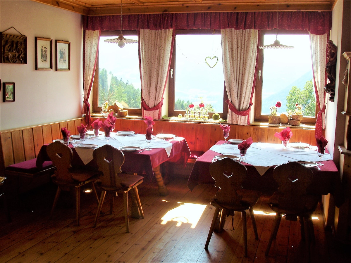 Lítið b&b og bóndabýli með hálendi á Ritten nálægt Bolzano í Dólómítunum. Lítið notalegt einstaklingsherbergi FYRIR EINN, innréttað í hefðbundnum tyrolean stíl, með sturtu, salerni og svölum. Morgunverður innifalinn. Við bjóðum upp á kvöldverð á forpöntun. Staðbundinn skattur € 2,50 er ekki innifalinn.