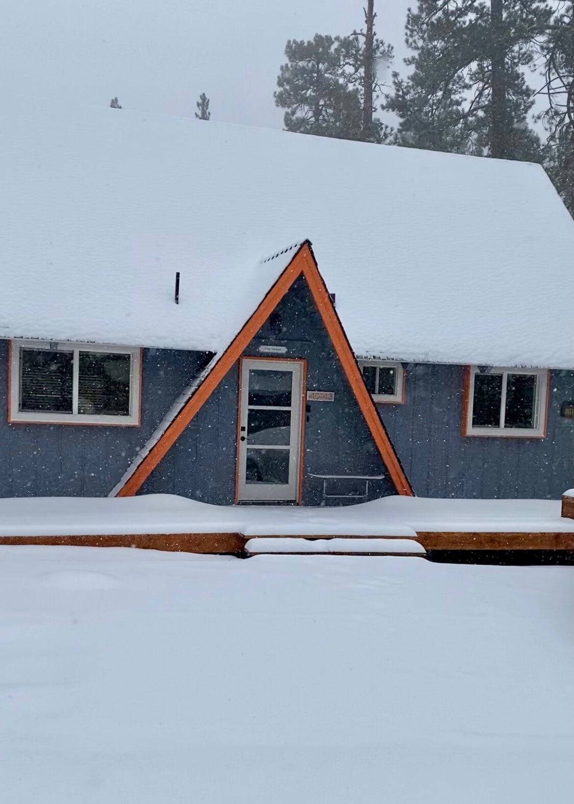 Welcome to Midnight Chalet, your modern A-frame escape in Big Bear Lake - peaceful tree & mountain views, relaxing deck with fire pit, cozy gas fireplace, and convenient location near The Village and the lake. Sleeps 5 | 2 bedrooms | 2 beds | 1 bathroom Spacious deck w/ fire pit & new Blackstone BBQ griddle Stunning tree & mountain views from the large A-frame windows Cozy living room w/ gas fireplace & Smart TV Fully stocked kitchen w/ Keurig coffee maker & high-quality cookware