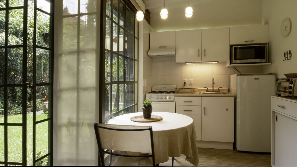 Mjög sérstakur og notalegur staður í hjarta Coyoacán! við hliðina á Coyoacán-uppeldisstöðvunum við Melchor Ocampo götuna Tilvalið fyrir par með eða án barna sem vilja njóta dvalarinnar eða fara í góða gönguferð um undur Coyoacán :)