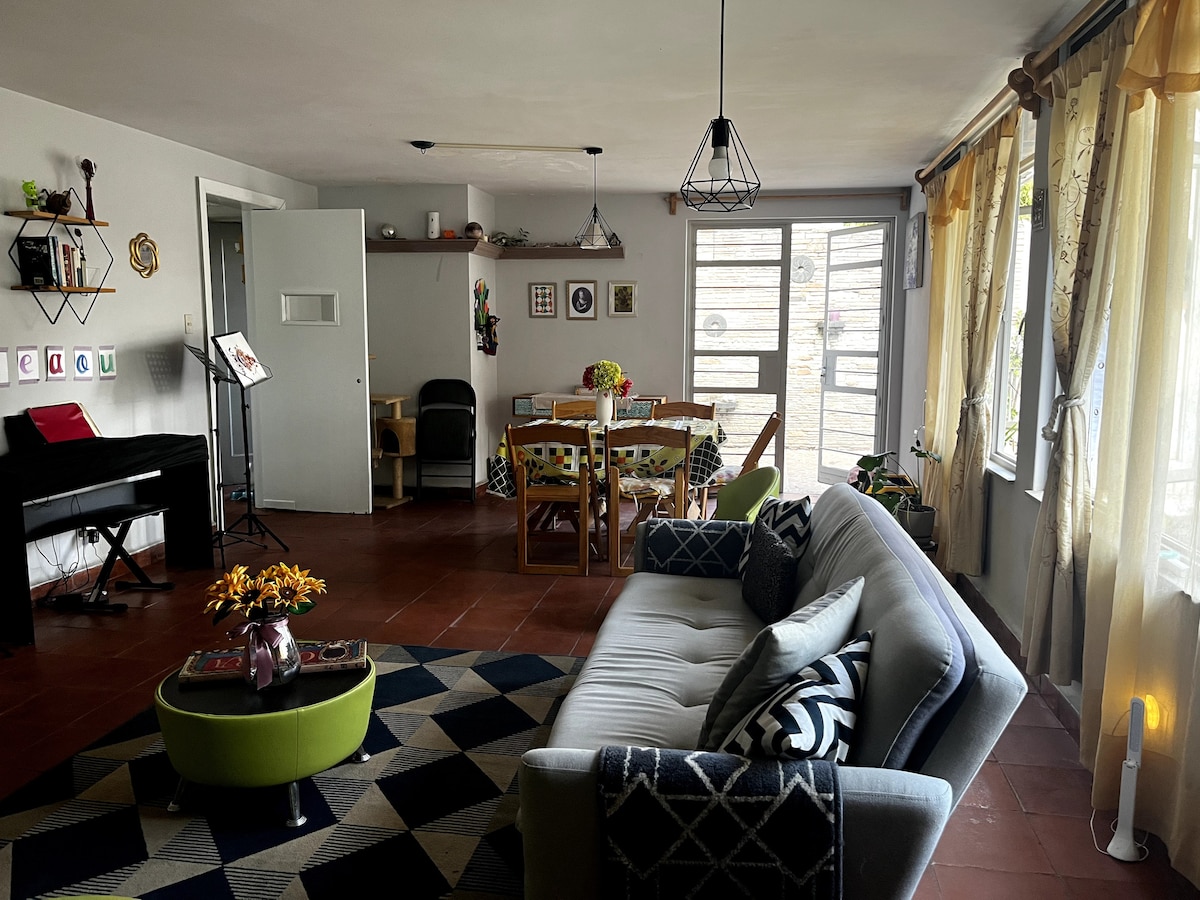 Þessi nútímalega íbúð er staðsett í miðbæ San Ángel, nýlenduhverfi sem stofnað var skömmu eftir landvinninga Spánverja. Það er staðsett á annarri hæð, það er með herbergi með Queen size rúmi, snjallsjónvarpi og plássi til að geyma föt. Sjónvarp með snjallsjónvarpi, skrifborði og svefnsófa í tvöfaldri stærð. Fullbúið eldhús og morgunverðarsvæði. 1 fullbúið baðherbergi. Við þrífum íbúðina, skiptum um handklæði og rúmföt einu sinni á 7 daga fresti.