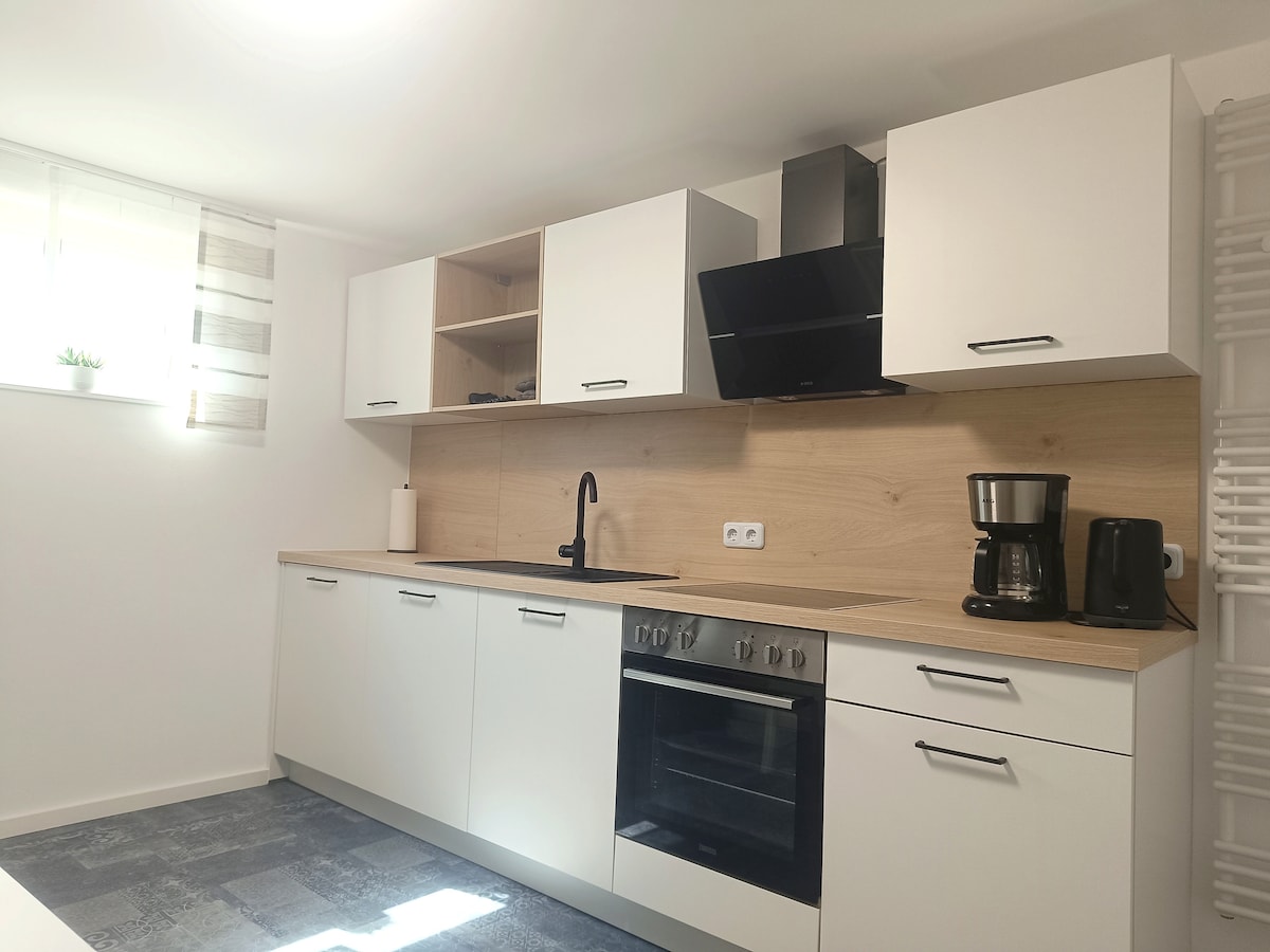 Þessi nýuppgerða íbúð með sérinngangi er í kjallara hússins okkar! Með samtals 4 herbergjum, 1 svefnherbergi með tvíbreiðu og einbreiðu rúmi, 2 svefnherbergi með svefnsófa fyrir 2, baðherbergi með stórri sturtu, opið eldhús með stórri borðstofu, tilvalið fyrir 1 til 5 manns! Samtals 70 fermetrar og nútímalega innréttað! Mjög miðsvæðis og kyrrlát staðsetning í Untersiemau, mitt á milli Korbmonavirusstadt Lichtenfels, Veste City of Coburg og heimsminjastaðar Bamberg!