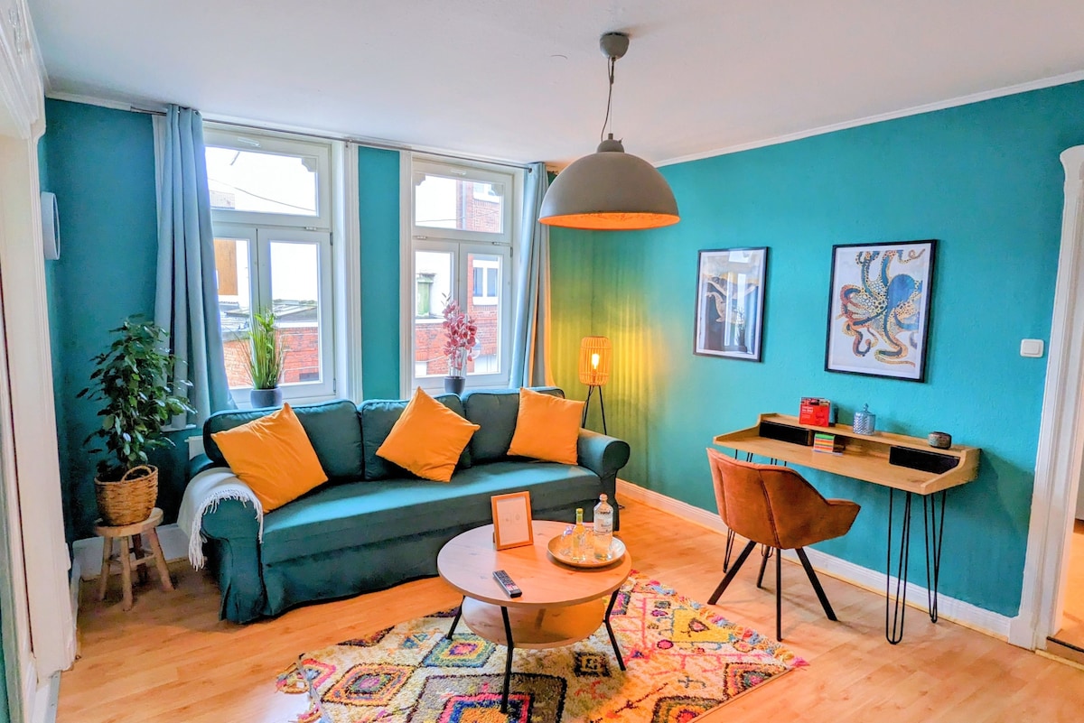 ☆ RELAX AND WORK IN ONE ☆ Das hochwertig eingerichtete 3-Zimmer Apartment ist perfekt für einen entspannten oder produktiven Aufenthalt geeignet → 24h Check-In → 87 m², perfekt für 2-4 Personen → 1 Schlafzimmer → 1 Gemütliches Boxspringbett 180x200 → Wohnzimmer mit TV und Schlafsofa → Arbeitszimmer mit höhenverstellbarem Tisch & Bildschirm → Zentral & dennoch ruhig → voll ausgestatteten Küche, Spülmaschine... → Waschtrockner → Philips-Kaffevollautomat → Highspeed WLAN → Parkplatz auf dem Hof.
