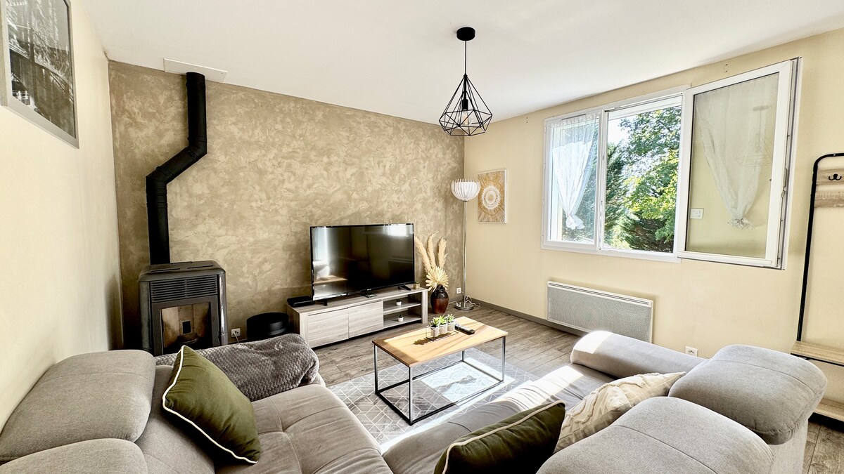 Nálægt miðaldaþorpinu Saint Léonard de Noblat (3 km) og öllum þægindum þess á D141-ásnum. 75 m² einbýlishús með pláss fyrir litla fjölskyldu með börn og börn. Á lokaðri og öruggri lóð: Sjálfvirkt hlið sem veitir aðgang að sameiginlegum húsagarði að aðalaðsetri okkar. Bílastæði er frátekið fyrir þig sem og skjólgott bílastæði fyrir reiðhjól, mótorhjól og hjólhýsi. Þú færð lokaðan einkagarð með beinu og sjálfstæðu aðgengi frá stofunni.