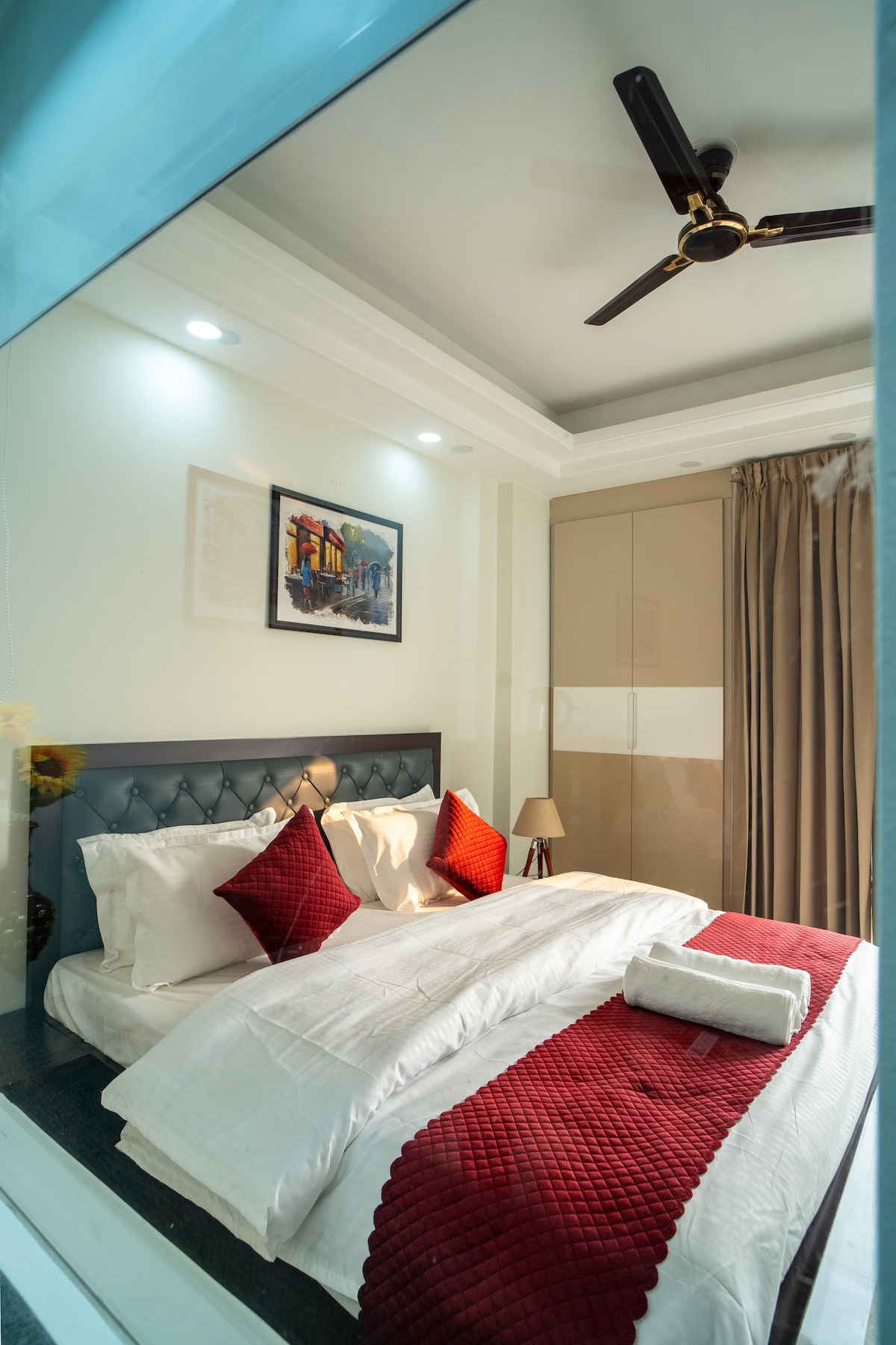 Bring your family or group of friends to this beautifully designed space that blends comfort, style, and a prime location in the heart of Gurgaon. Whether you're in town for work or a weekend getaway, this cozy home offers everything you need - spacious bedrooms with plush beds, built-in wardrobes, and clean, private bathrooms for a relaxing stay. The open-concept entryway creates the perfect setting to enjoy quality time, play games, share meals, or simply unwind together — just like home.