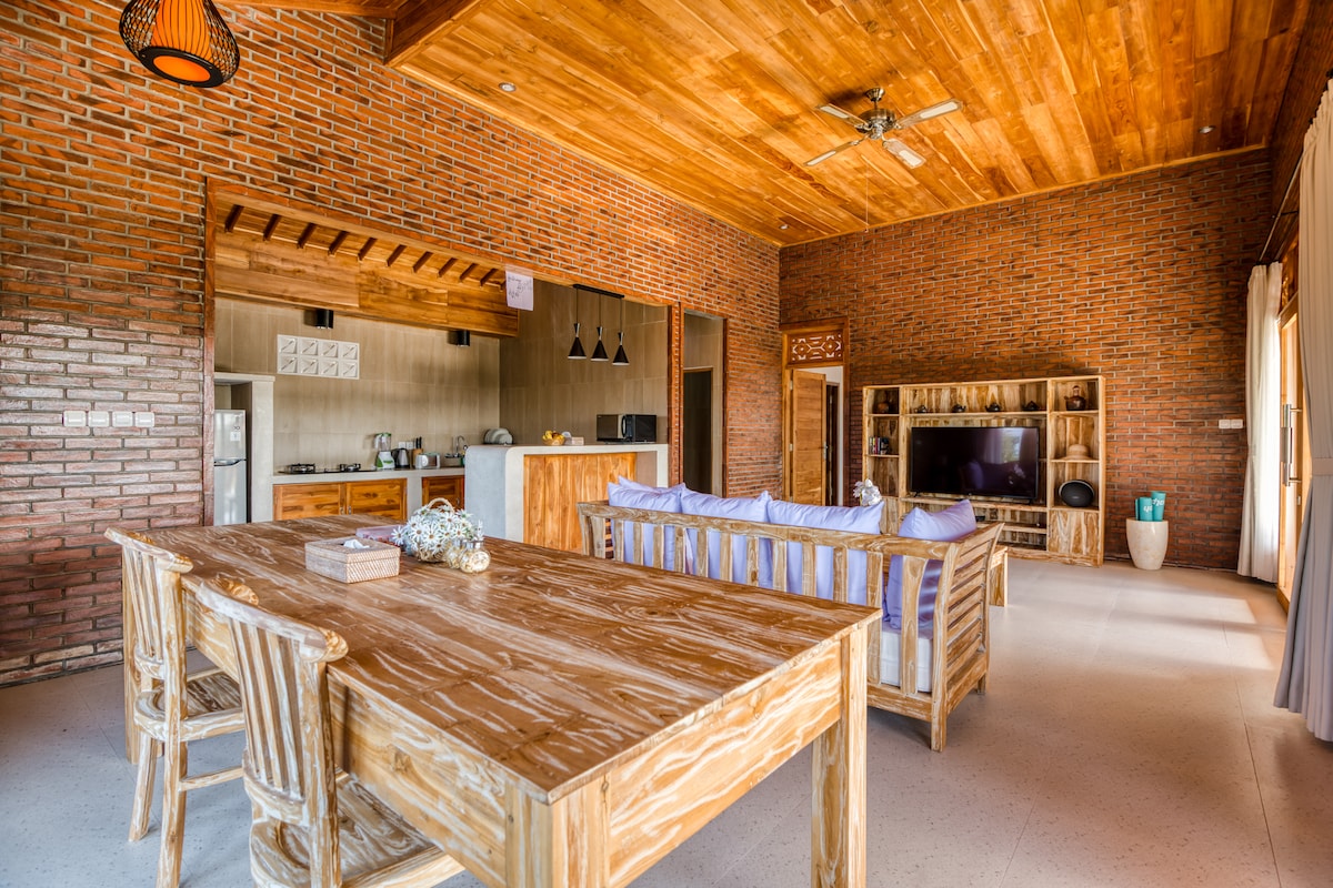 Avana Dream Villa er bambusmeistaraverk með 3 svefnherbergjum sem stendur á stórkostlegum kletti nálægt Sidemen. Húsið er hannað til að blanda saman lúxus og náttúru og býður upp á stórkostlegt víðáttumynd úr öllum herbergjum. Njóttu einkasundlaugarinnar yfir yfirgengilegu dölunum, með Agung-fjallið til vinstri, hrísgrjónaakrum fyrir framan þig og Indlandshafinu til hægri. Fyrir notalega kvöldstund bjóðum við einnig upp á skjávarpa og skjá að beiðni — fullkomið fyrir kvikmyndakvöld undir stjörnubjörtum himni í einkahvílunni ykkar í frumskóginum.