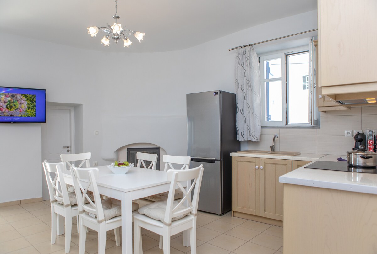 Hefðbundin íbúð í Amorgos. Húsið hefur verið nýuppgert og er með 2 svefnherbergi og stórt stofu- og eldhússvæði. Það er einnig með stórum kykladískum svölum með útsýni yfir aðaltorgið, kastala landsins og vindmyllurnar.