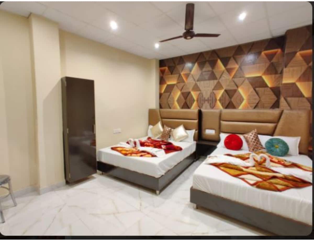 Tilvalið fyrir dvöl með 4 fullorðnum og 2 börnum (samtals 6 ). Gestir njóta afslappaðrar upplifunar á þessum miðlæga stað. Þetta er staðsett á flestum Posh-svæði Amritsar, þ.e. Lawrence-vegi. En það er frekar friðsælt á sama tíma vegna staðsetningarinnar. Helstu verslunarmiðstöðvar, veitingastaðir, Company Garden, Golden Temple, Durgiana Temple, lestarstöð, strætisvagnastandur o.s.frv. eru í innan við 3,5 km fjarlægð. Ferðamenn geta meira að segja skoðað allt á göngu. Við höfum komið fyrir rólu fyrir framan opinn garð fyrir gesti