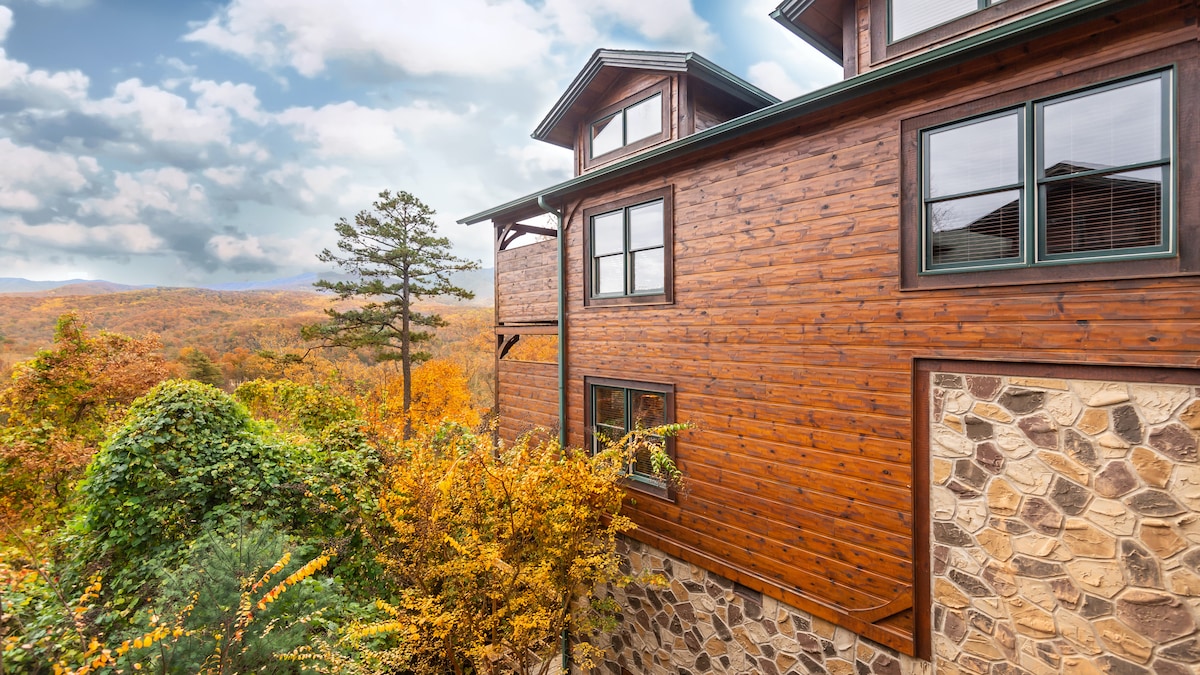 Luxview Lodge is a MODERN LUXURY CABIN with AMAZING UNOBSTRUCTED VIEWS nestled in the Smoky Mountain resort community of Cobbly Nob. Our cabin is 2600 sqft with 3 bedrooms, 3.5 bath, game room, hot tub, INDOOR SWIMMING POOL (w/75” Theater Screen & Dolby Atmos Sound) and EV charging! See if you can spot a bear with our big deck binoculars! 10 mins to Gatlinburg! With 24 hour resort security you will feel safe and secure. We are located low on the mountain with easy roads to the property.