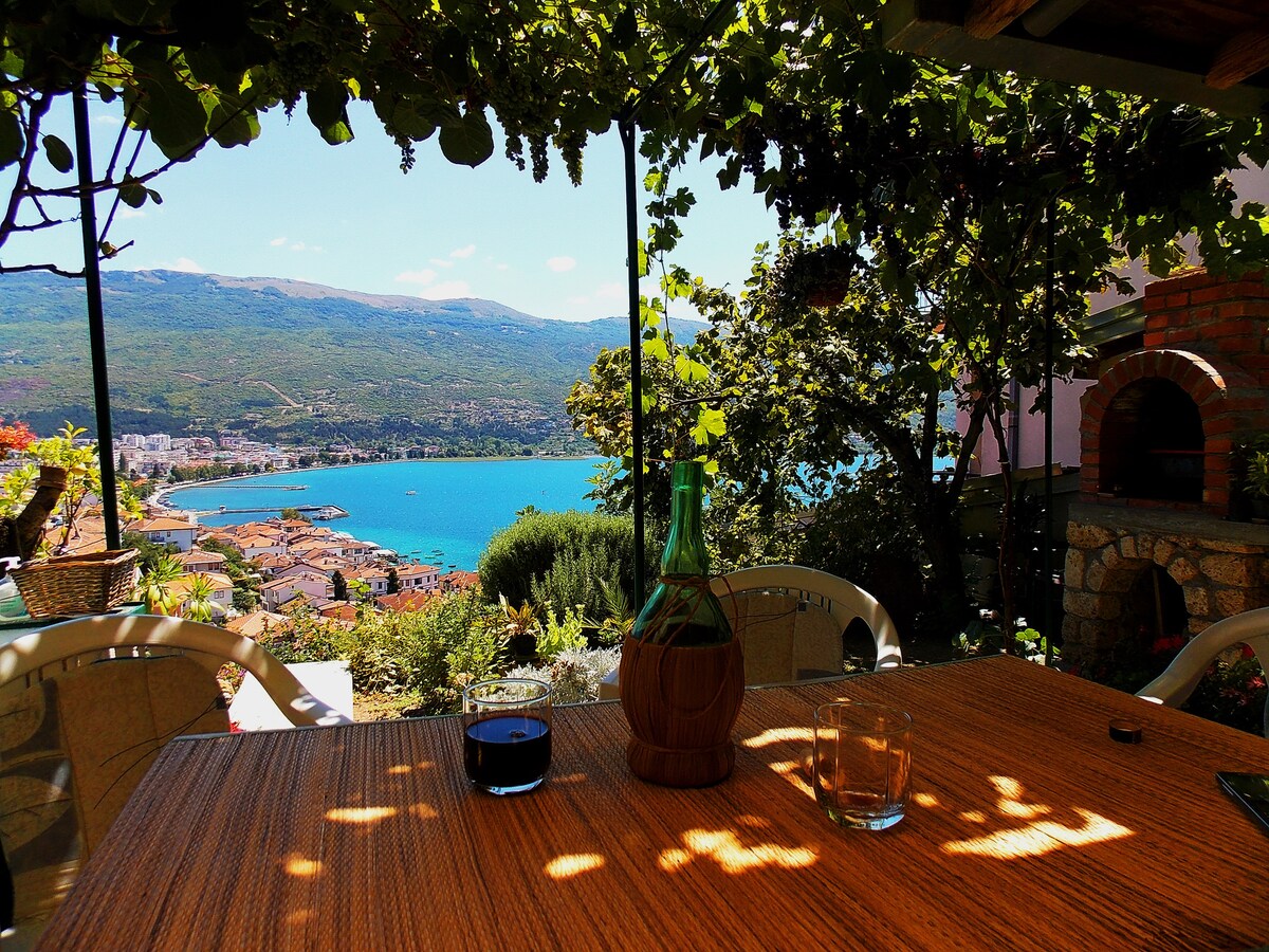 Íbúðin er staðsett í 50m fjarlægð frá Efri hliðinu og er hluti af nýju húsi. Þar er ein stór stofa með svölum með útsýni yfir Ohrid-vatnið, 2 svefnherbergi - eitt með 3 rúmum (1 tvöfalt og 1 einbreitt rúm) með svölum og eitt svefnherbergi með 2 einbreiðum rúmum og 1 baðherbergi. Fullbúið eldhúsi, setustofu, þvottavél, flatskjá og hraðvirku þráðlausu neti. Bílastæði eru í boði án endurgjalds nálægt íbúðinni. Orhid St. Paul the Apostle Airport er í 10 km fjarlægð með bíl.