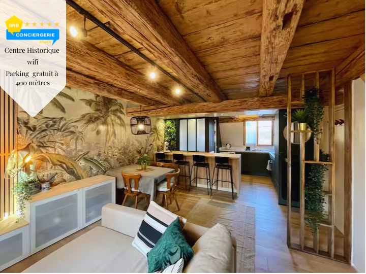Heillandi, uppgerður bústaður: Bústaðurinn, endurnýjaður að fullu með beru trégólfi, er staðsettur í hjarta hins sögulega miðbæjar Barr, höfuðborgar Bas-Rhin vínanna. Þessi stórkostlega 2 herbergja íbúð tekur hlýlega á móti þér í notalegu andrúmslofti þar sem nútíma og hefðir koma saman. Gistiaðstaðan er í hefðbundnum innri húsgarði á fyrstu hæð ( aðgengileg með stiga) í útbyggingu á heimili okkar og með sérinngangi. Bílastæði