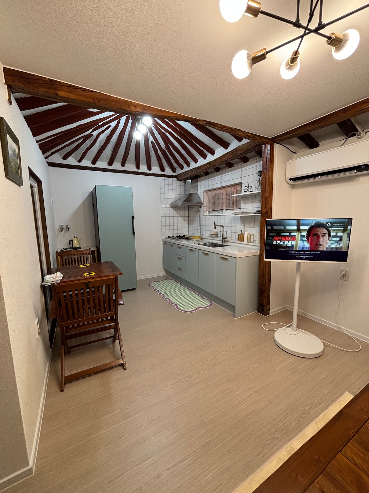 Hanok gisting þar sem hægt er að fara á háaloft Snúðu bakinu á háaloftinu á Luga. Þetta er einkarekin gistiaðstaða sem notar aðeins eitt teymi á dag með rými í aðalbyggingunni og viðbyggingu 26 pyeong í 100 pyeong garði. Hanok Stay Ruga er í 10 mínútna fjarlægð frá Hahoe Village og það er nóg pláss fyrir pör og fjölskyldur og það er einkarými eins og hótel og ævintýralegt viðbyggingareldhús. Rúmgóði garðurinn er úr fallegum blómum og landslagshönnuðum trjám svo að útsýnið er gott og hann hentar börnum að hlaupa um og leika sér. Þetta er frábær staður til að lesa, hlusta á tónlist og slaka á í rólegheitum og þetta er besti staðurinn til að drekka te, njóta útsýnisins yfir þorpið eða fara í hálft bað og draga úr þreytu ferðarinnar. Á kvöldin getur þú grillað jafnvel þótt það rigni í viðbyggingareldhúsinu, horft á stjörnurnar á næturhimninum með graspöddum, leikið eld í garðinum og skapað dásamlegar minningar. Þetta er tilfinningaþrungin gistiaðstaða með öllum notalegheitum og þægindum. Það er staðsett í Pungsan-eup, Andong-si og Hahoe Village Byeongsan Seowon Bouillon er í 10 mínútna fjarlægð. Í morgunmat er boðið upp á samlokur, drykki og hrísgrjónanúðlur án endurgjalds og boðið er upp á kaffi með hylkjum, kaffibaunir og Osulloc te.