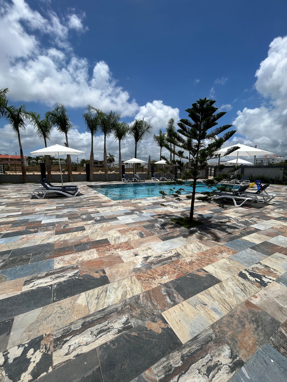 Magnað útsýni frá 15. hæð turnsins á sundlaugarsvæðinu. Njóttu sjávarútsýnisins og 🌅 tilkomumikils sólseturs 💯 Það er staðsett á hinu virta svæði La Esperilla, steinsnar frá veitingastað , apótekum í almenningsgörðum, colmados sem er miðlægur og öruggur staður til að njóta allrar fjölskyldunnar