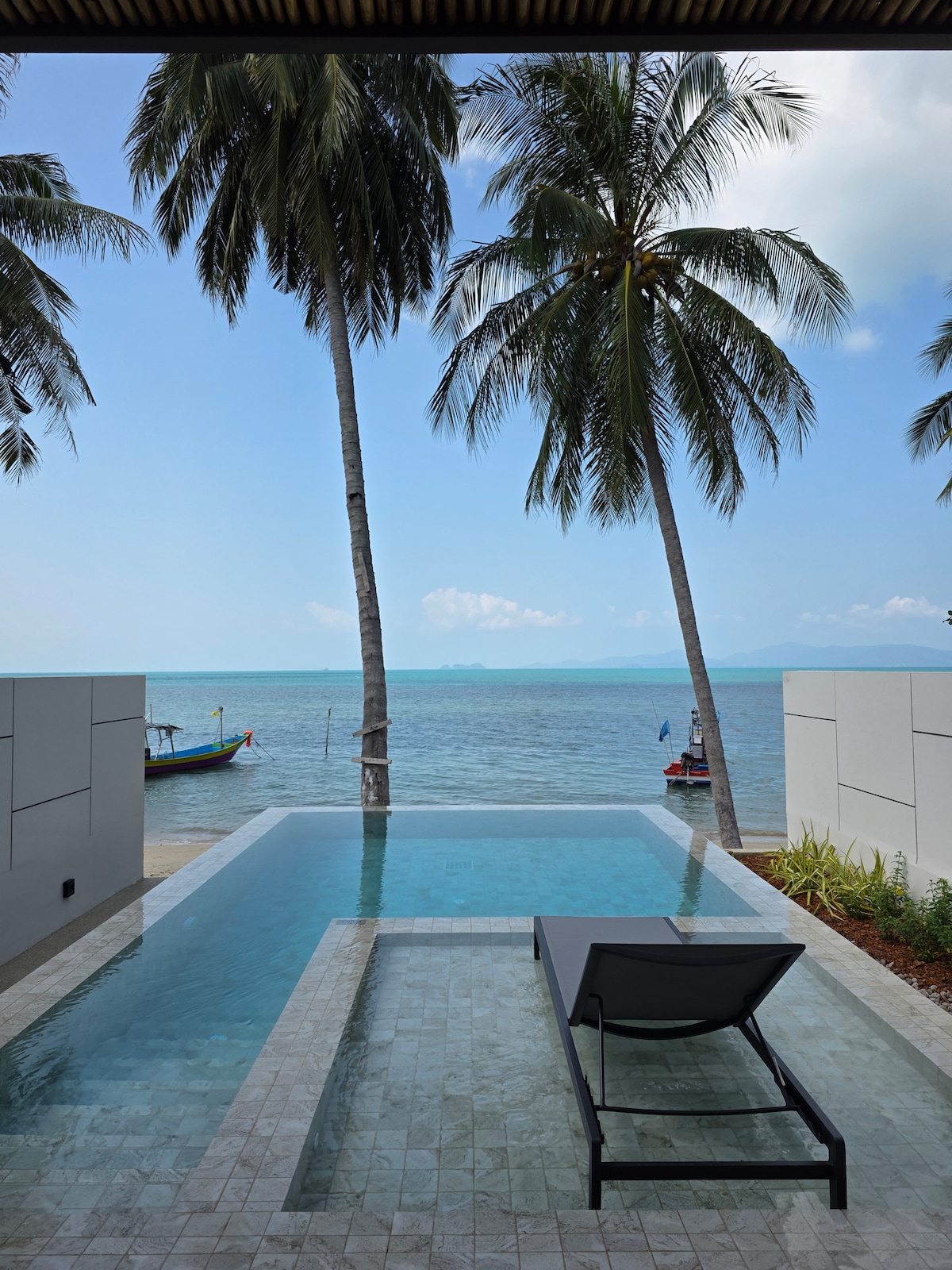 Hugsanlegur hávaði frá og með 26. apríl þar sem byggingarvinnsla hefst í villunni við hliðina. Með því að ganga frá bókun samþykkja gestir byggingarhávaða á daglegum tímum frá kl. 8:00 til 18:00. Verðið hefur verið lækkað í samræmi við þetta. Sjaldgæft tækifæri til að leigja þessa strandvillu í mánaðarlega leigu. Venjulega er hún leigð út til skamms tíma. Útsýni yfir Bang Por-ströndina frá veröndinni og sundlauginni. Göngufæri frá veitingastöðum á staðnum og alþjóðlegum veitingastöðum. Tilvalið fyrir fjarvinnu, með sveigjanlegri vinnustundaskrá eða vinnu utan venjulegs vinnutíma. Ókeypis þrif, þráðlaust net, Netflix, standbrimbretti, kajak og sundlaug.