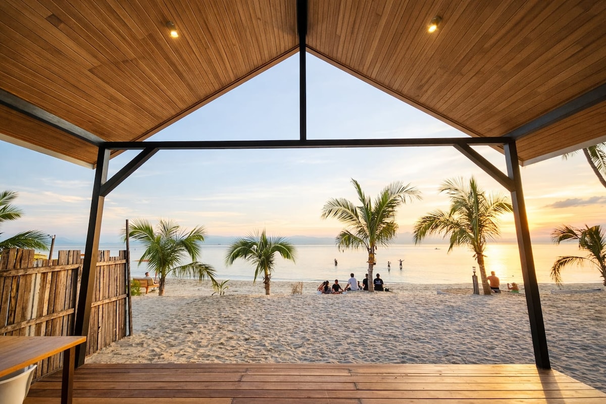 🏠 Húsið er staðsett innan Boon Heritage House Guesthouse. Herbergið er innréttað með náttúrulegum efnivið og hlýjum tónum. Hún er með salerni, loftkælingu, sérbaðherbergi, þægilegum rúmfötum, sjónvarpi, ísskáp og öðrum nauðsynjum fyrir afslappandi dvöl. Þrátt fyrir að þetta herbergi bjóði ekki upp á beint sjávarútsýni geta gestir samt sem áður notið útisvæðanna með útsýni yfir sólsetrið. Athugaðu að húsið er við aðalveginn og því heyrist umferðarhávaði frá farartækjum á leið sinni.