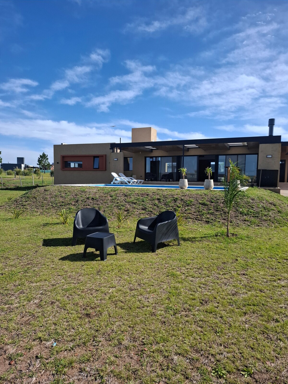 Hönnunarfjölskylduhús með almenningsgarði og einkasundlaug. Húsið okkar var hannað fyrir algjöra afslöppun án þess að svipta sig neinum þægindum. Það er rúmgott, þægilegt og í öllum rýmum þess er hlýlegt nútímalegt útlit sem samþættir náttúruna. Rýmin innandyra eru tengd að utan í gegnum breiða glugga og fallegt gallerí en í 1000 metra fjarlægð frá eigin almenningsgarði eru nokkur horn til að njóta útivistar.