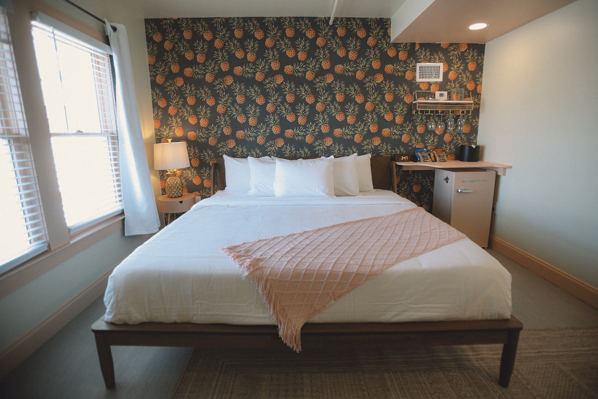 King Suite at Las Olas – Modern Comfort Steps from the Sand Sleiktu sólina og slappaðu af í Las Olas á Treasure Island, afdrepi við ströndina handan götunnar frá glitrandi vatninu á Treasure Island Beach. A King Suite within a gem of 11 clean & comfortable guest rooms designed for beach lovers. Svítan rúmar 4 manns með King-rúmi, Queen-sófa, eldhúskrók og öllum nauðsynjum svo að þér líði eins og heima hjá þér. Nútímaþægindi með sjarma við ströndina. Las Olas ~ leyfðu öldunum að leiðbeina þér!