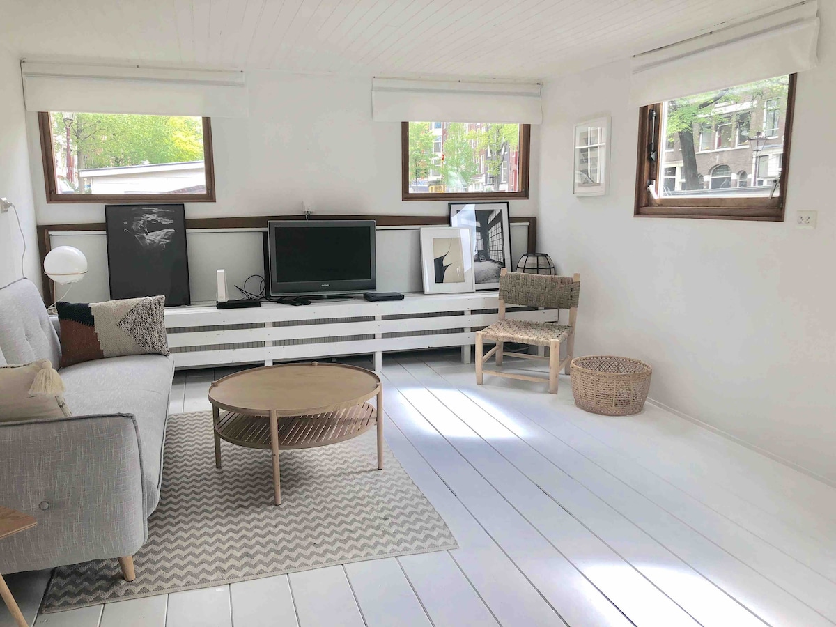 Welcome to our charming houseboat retreat in the heart of Amsterdam's historic Jordaan neighborhood! Experience the unique allure of living on the water while enjoying all the comforts of a cozy home. This delightful 25m2 suite on a typical Dutch houseboat offers all you need for a nice stay in Amsterdam, including a private bathroom, a small fridge, microwave, Nespresso machine, tea kettle, and a stylishly decorated interior.