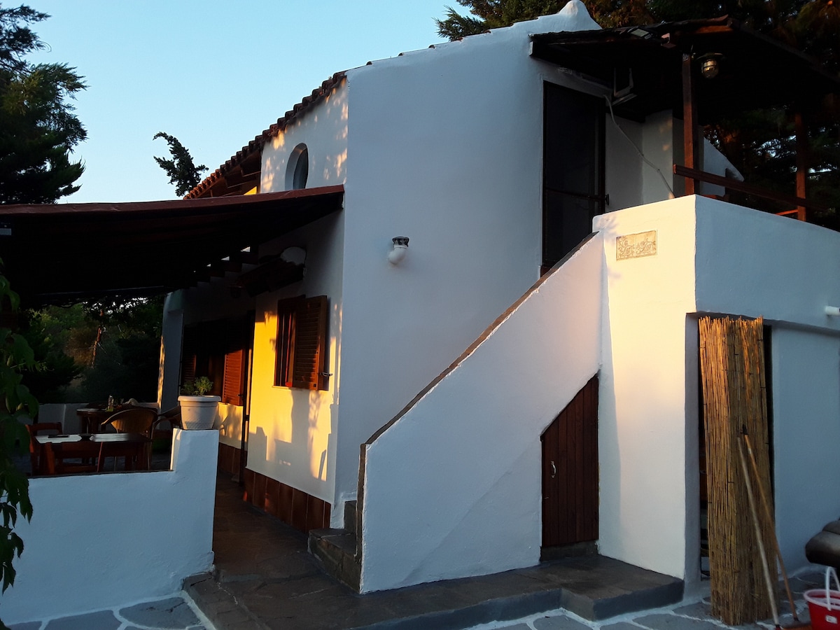 Its a renovated traditional farm house of 1900 years,on 150m.above sea,in spacious land with olive,oaks,fruit trees in 2 levels open.sp,2 k.s. beds,1double bed,1bed under the srars& hammocks, bathroom,kitchen, photovoltaic autonom system for full lighting, charging devices, fridge, kitchen,fire place.Traditional old wood oven exists! Great peaceful, harmonic environment, yoga,meditation,var.activities hiking,swiming in the river,water falls, in the sea, great food (fish,baked goat,trad.products)