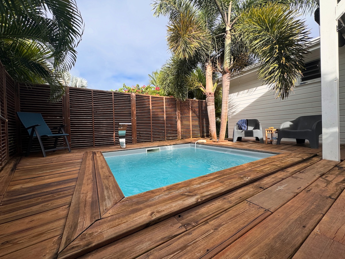 Escape as a couple to this recent 45 m² villa, combining modern comfort with Caribbean charm 🌺. Private balnéo pool, sunny terrace and tropical garden invite you to relax together. The beach is just a 3-minute walk away 🏝️—perfect for swimming, jet-skiing or sunset strolls. Takeaway food and several restaurants nearby. Ideally located between Sainte-Anne and Saint-François to discover Guadeloupe hand in hand. Welcome cocktails 🍹