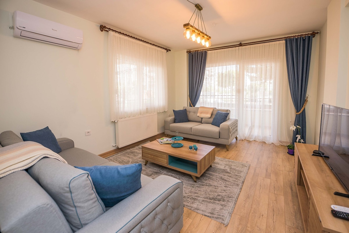 Hraðinn á þráðlausu neti er 50 - 200 mbps sem eru efri mörkin í kalkún. Það er 24 klst heitt vatn í húsinu mínu og það er hannað sem 1 herbergi og 1 stofa. Sófinn getur verið rúm í stofunni. Það eru tvær loftræstingar(TOSHİBA). Það er í 2 mínútna göngufjarlægð frá sögufrægum stöðum og veitingastöðum í Oldtown. Heimsfræga MERMERLİ ströndin er í 5 mínútna fjarlægð. Í húsinu er mjög stór garður og ef þess er óskað er hægt að borða morgunverð og kvöldverð í garðinum. -airport 25 mínútur