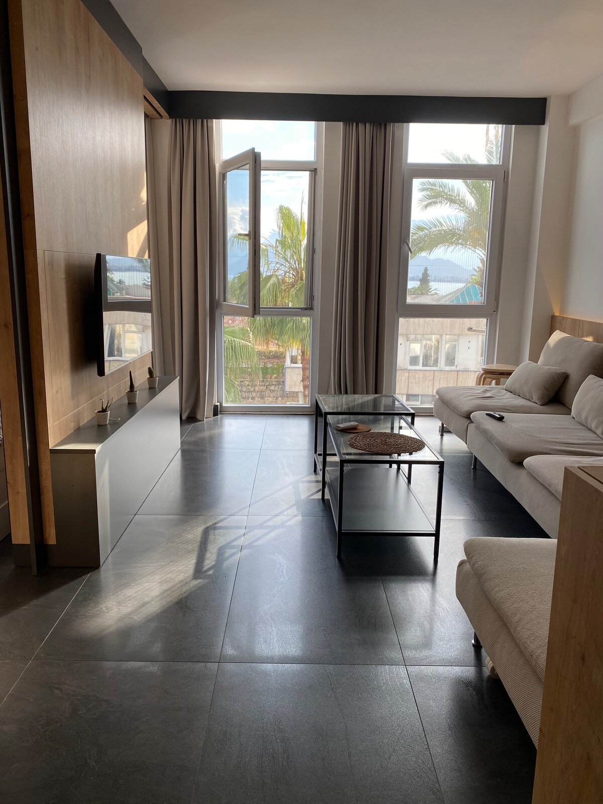 Tveggja svefnherbergja íbúðin okkar á sjöttu hæð er með mögnuðu útsýni yfir höfnina í gamla bænum og sjóinn - eitthvað sem flest hótel í Kaleici geta ekki boðið upp á. Í hverju svefnherbergi eru tvær manneskjur og eitt svefnherbergjanna er með aðgang að verönd. Það er lítið, vel búið eldhús og stofa og borðstofa sem opnast út á rausnarlega verönd. Þessi létta og rúmgóða íbúð er vel búin og er tilvalinn valkostur fyrir fólk sem vill njóta stórkostlegs útsýnis yfir gamla bæinn og strandlengjuna.