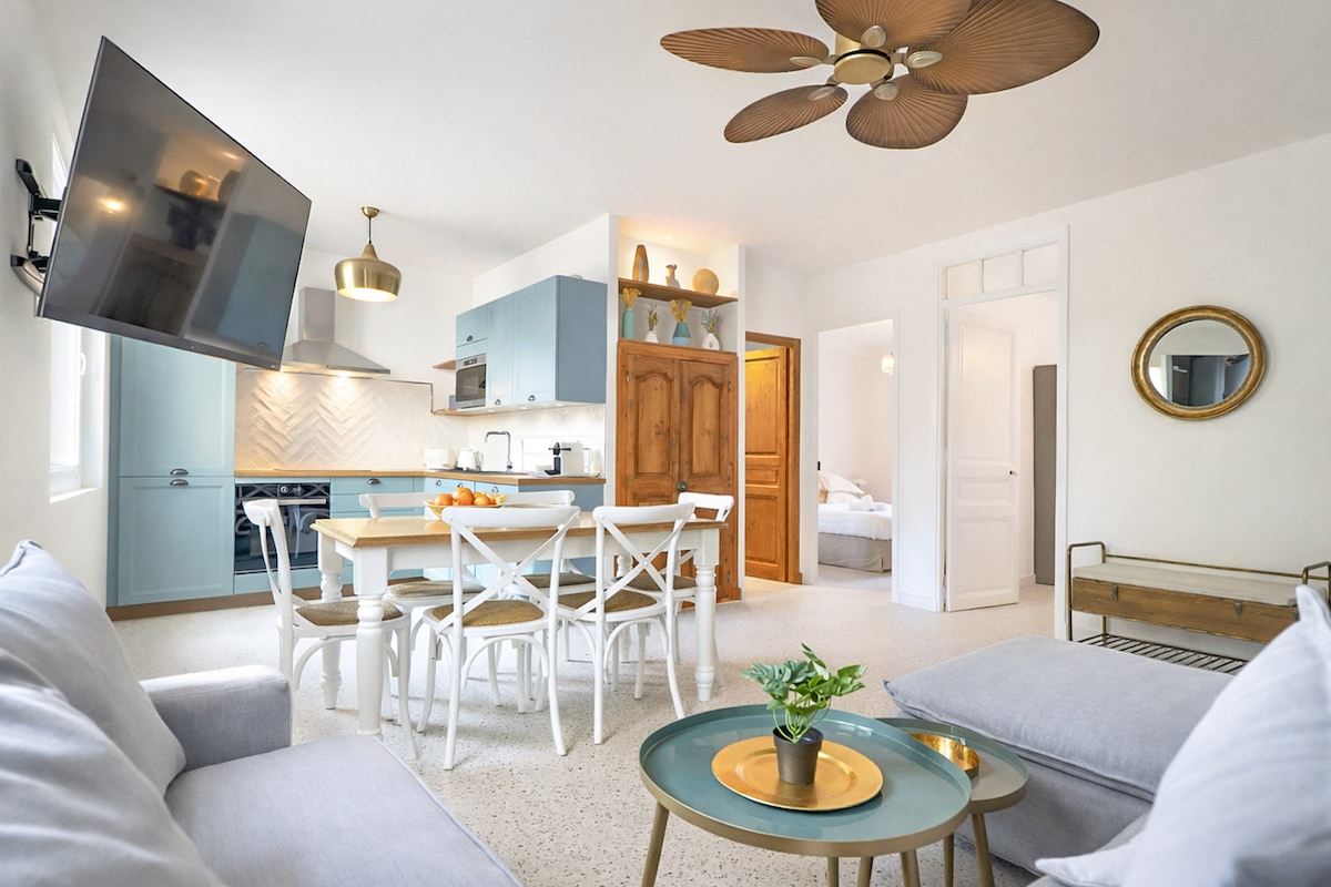Welcome to the heart of Old Antibes! This charming one‑bedroom apartment of around 40 m² welcomes you in a picturesque lane of the historic center, just steps away from the beaches, the Vauban ramparts, and the Provençal market. Surrounded by lively cafés, quality restaurants, and unique boutiques, the apartment offers peace and coolness behind its old stone walls — the perfect retreat after a sunny day. Only a 5‑minute walk from the sea, it’s the ideal base for exploring the French Riviera.