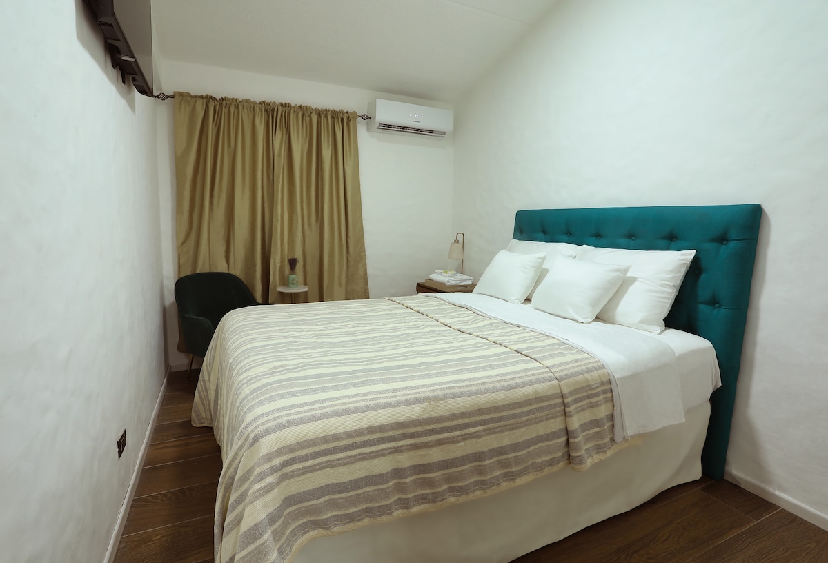 Stúdíó tilbúið til að taka á móti gestum í leit að þægilegum og ferskum stað í frábæru ástandi. Lítið og notalegt stúdíó með öllu sem þú þarft fyrir skemmtilega dvöl. Það er með hjónarúmi (fyrir einn eða tvo), 2 staka hægindastóla með tyrknesku og útbúnum ELDHÚSKRÓK. Staðsett í öruggu og rólegu hverfi, nálægt Mun sendiráði í 5 mínútna göngufjarlægð, matvöruverslun í 10 mín göngufjarlægð) og miklum fjölda veitingastaða og afþreyingarsvæða fyrir fullorðna og stráka.