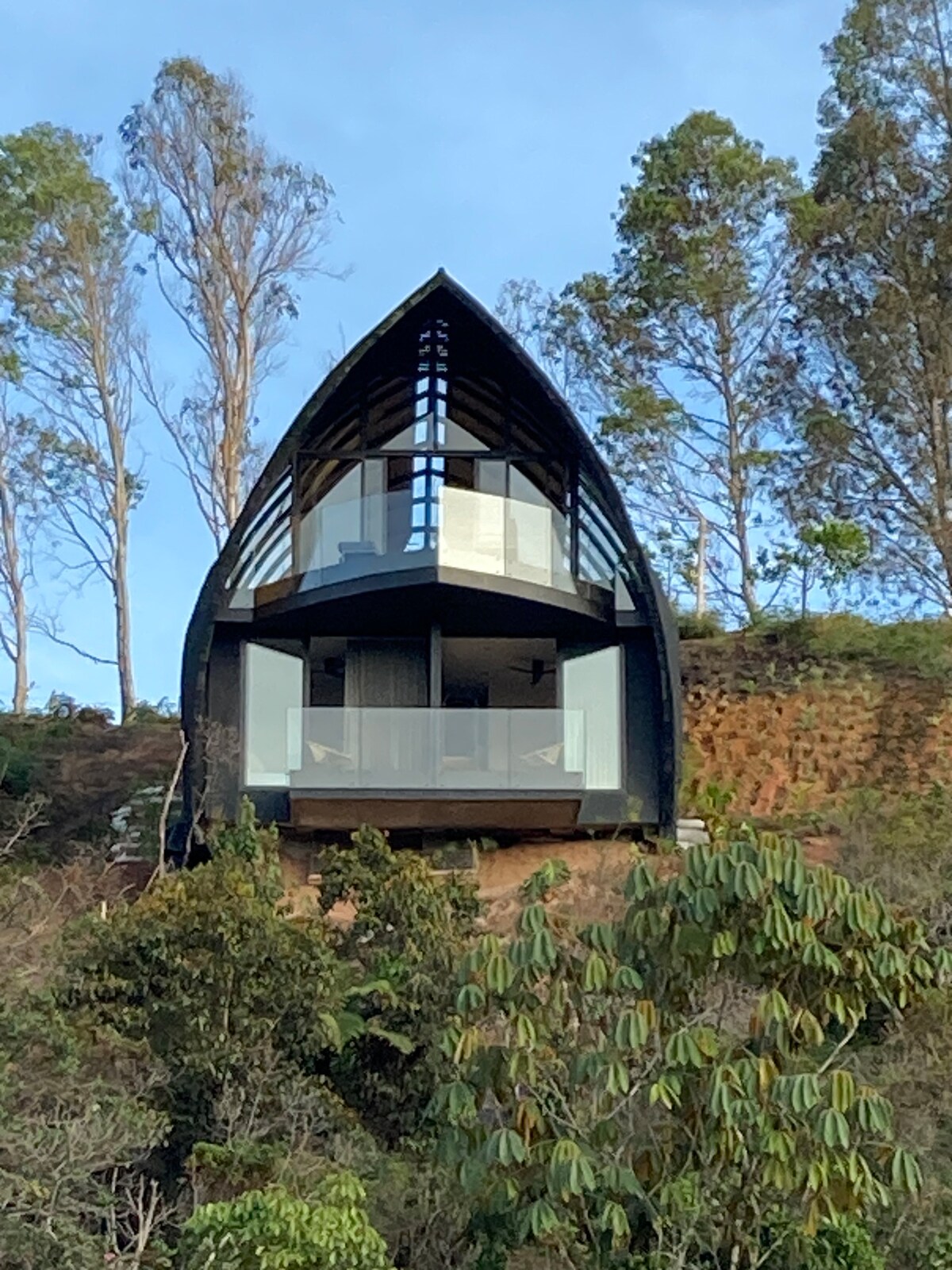 Hugmyndin okkar er friðhelgi og þægindi í miðjum náttúrunni. Hvert herbergi er með háum staðli king size rúmi fyrir þægindi þín, öll herbergin eru með beint útsýni yfir vatnið, svalir og sérbaðherbergi; nuddpotturinn er staðsettur efst á fjallinu undir mikilfenglegum júkalyptustrjám. Þú kemur inn í húsið í gegnum þakið og sérð dásamlegt útsýni yfir vatnið. Við bjóðum upp á sérsniðnar upplifanir, hefðbundna matargerð, kokk, vatnsafþreyingu og heilsulind. Róðrarbretti og kanó eru innifalin