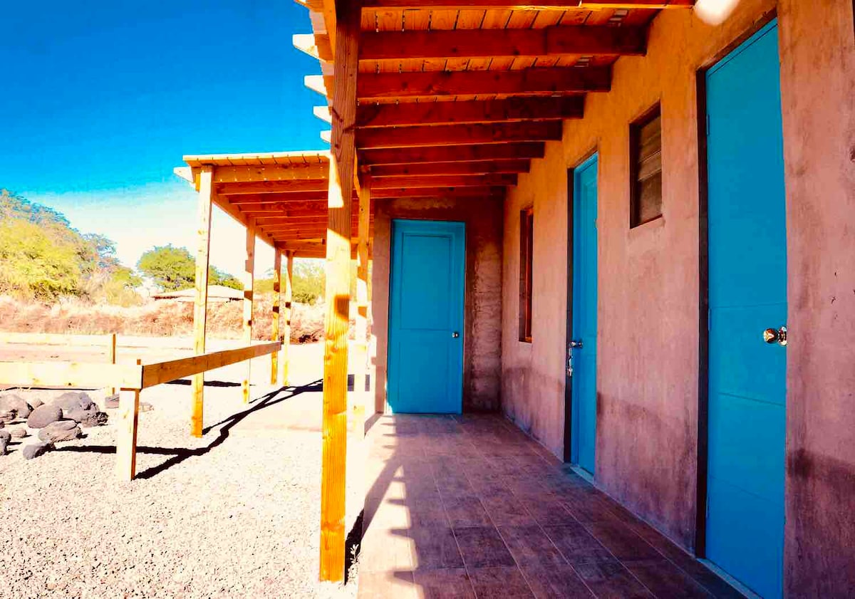 Es un espacio independiente tranquilo y acogedor, con una decoración sutil rustica, con su baño privado ideal para pasar una buena estancia y disfrutar de San Pedro de Atacama.