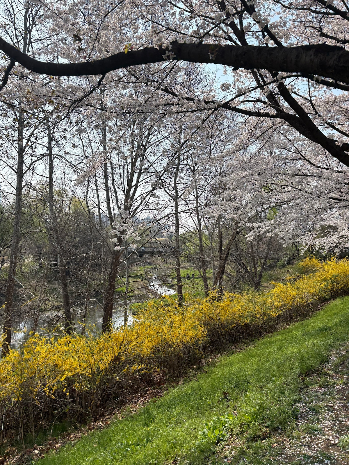 Allt rýmið á 1. og 2. hæð, laust fyrir 2-8 manns, 2 svefnherbergi (2 queen-size rúm), 2 rúmgóðar stofur (2 svefnsófar í queen-stærð), 2 baðherbergi, 1 eldhús (fullbúið með eldunaráhöldum), 12 sæta stórt borðstofuborð með valhnetum (4m), borðspil og Nintendo rofaleikir Eldhús - Fullbúið með rafmagnshrísgrjónaeldavél, örbylgjuofni, spanhellu, ísvatnshreinsiefni, kaffivél (espressóvél), eldunaráhöldum og kryddum, borðbúnaði, vínglösum og ísskáp Fallegasti gististaðurinn með bakgrunn í höllinni í miðborg Seúl. Þú getur notið heilunar með útsýni yfir óútgefið leynilegt garðsvæði Changdeokgung-hallarinnar og það er nálægt bæði neðanjarðarlestarstöðvum og almenningssamgöngum svo að það eru næg þægindi fyrir ferðalög. Ég bý í 10 mínútna fjarlægð frá yfirmanninum svo að ég get svarað hvenær sem er. * * Það eru engin aðskilin bílastæði en almenningsbílastæði eru í 5 mínútna göngufjarlægð.