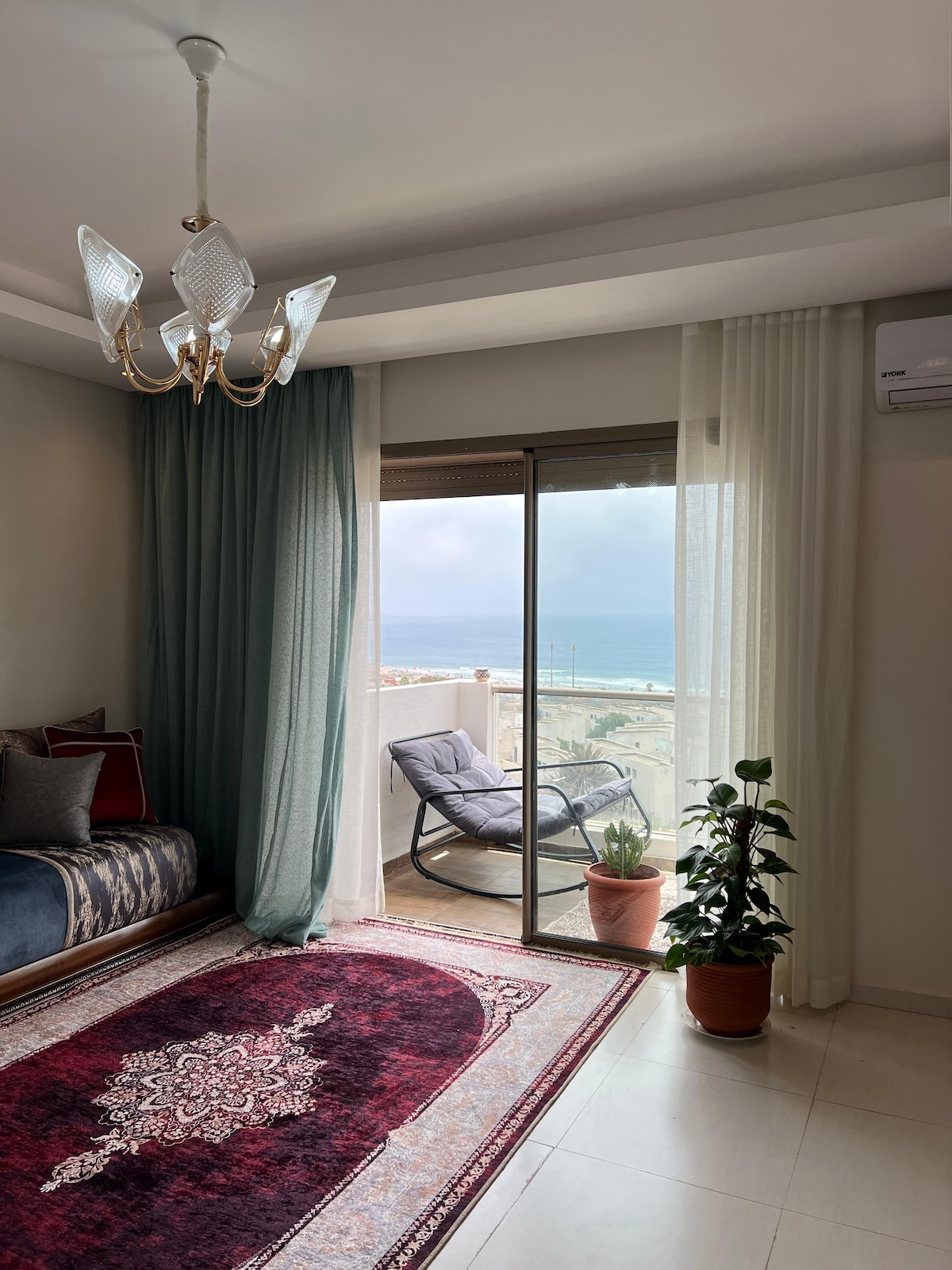 Finnst þér gaman að fara á brimbretti við ströndina og í góðu veðri? Íbúðin okkar í Anza (10 mín akstur frá Marina d 'Agadir) gerir þér kleift að njóta framúrskarandi dvalar með yfirgripsmiklu sjávarútsýni. Samanstendur af tveimur svefnherbergjum með tveimur sturtum og rúmgóðri stofu með loftkælingu í öllum herbergjum Einnig fullbúið eldhús og garðyrkjuþjónusta með öllu því öryggi sem óskað er eftir.