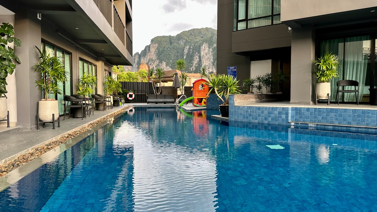 Njóttu glæsilega frísins í eigninni þar sem þægindin sem fylgja miðbænum og andrúmsloft hitabeltisparadísar. Ný hugmyndafræði um sjálfbæra og þægilega dvöl í hjarta ferðamannaborgar. Eignin okkar er með nútímalega, minimalíska og skilvirka hönnun. Frábær staðsetningin hjálpar þér að njóta næturlífsins, bragða á taílenskum mat, skoða dásamlegasta suðurríkja héraðið, taka þátt í eyjahoppi, gönguferðir, klettaklifur og einfaldlega slaka á.
