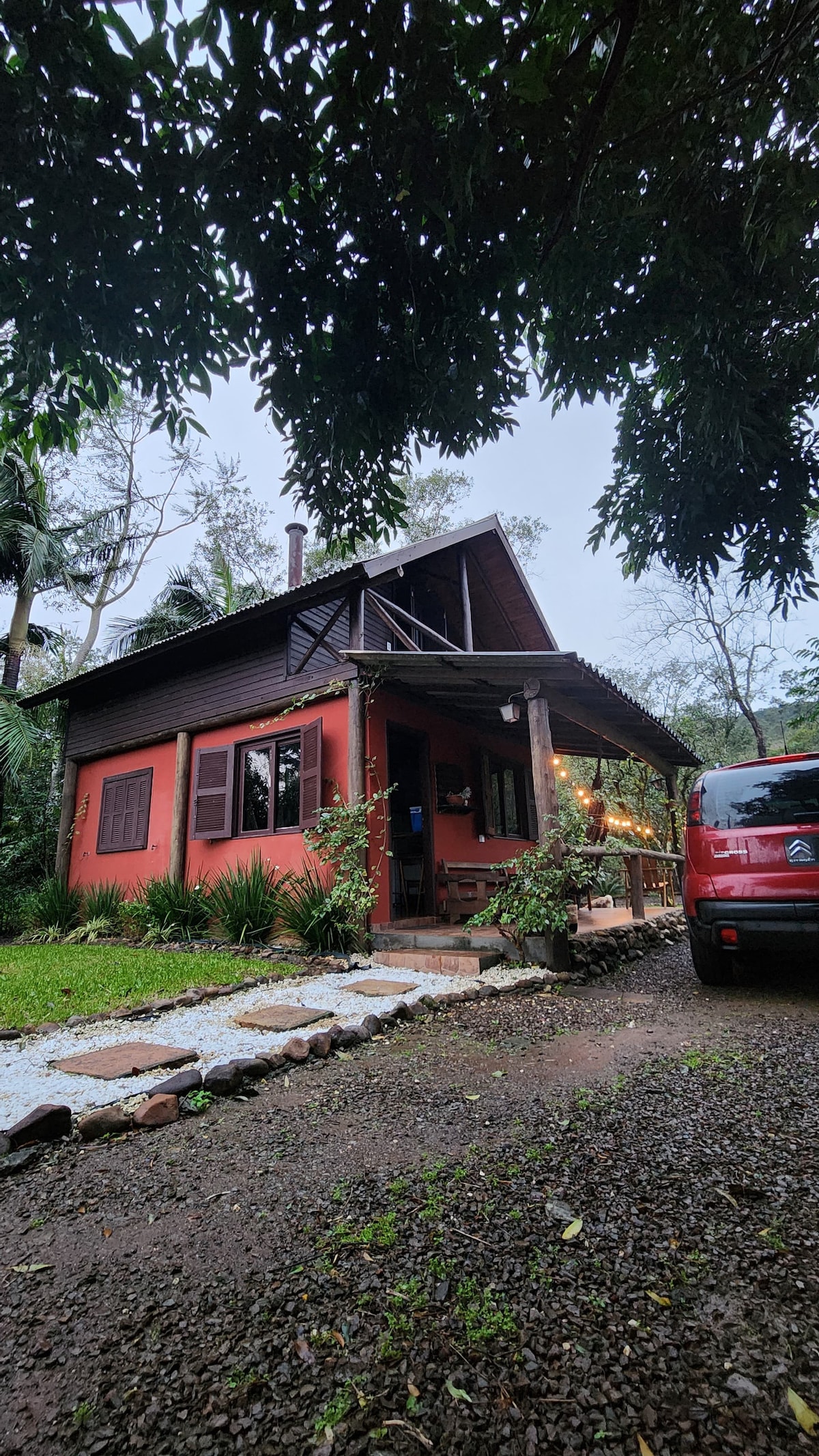 Slakaðu á í þessu rólega og stílhreina rými; fáðu sem mest út úr víðáttumiklum skógi, umkringdur fallegum trjám og araucaria furutrjám, með á sem umlykur eignina🧺, sem stuðlar að fallegu nesti og ef þú vilt upplifa ævintýri geturðu farið nokkra slóða um eignina auk þess að hafa fallegan foss sem er mjög nálægt eigninni. Við samþykkjum gæludýrið þitt🐾, alveg eins og þú munt elska nóg pláss til að skemmta þér.