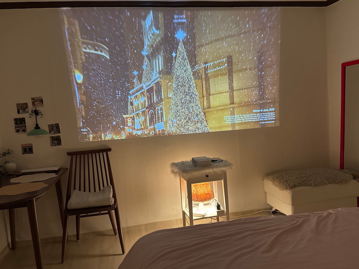 Seongsu stöð/3 herbergi/4 queen rúm/1. hæð/4 mínútur frá flugvallarrútu/5 mínútur að ganga frá Hangang/15 mínútur frá Seoul Forest almenningssamgöngum/Netflix • Skjávarpi