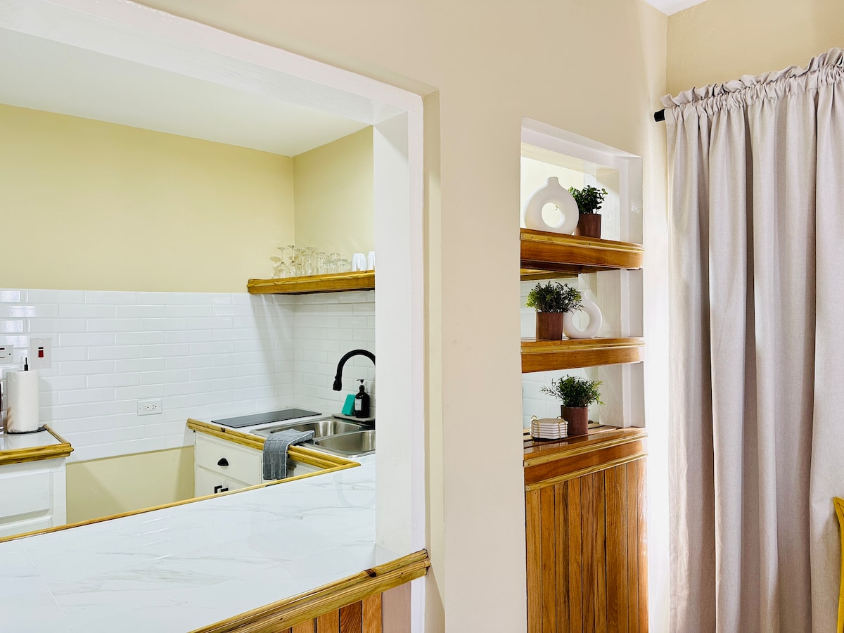 Sérlega nútímaleg og hlaðin samstæða í 2 mínútna akstursfjarlægð frá Sangsters Intl. flugvellinum og í göngufæri frá hinni heimsþekktu Hip Strip og ströndum Montego Bay. Þessi eining heldur einnig framúrskarandi næði og kyrrð þrátt fyrir að mjaðmagrindin sé í grundvallaratriðum fyrir dyrum þínum. Hver segir að þú getir ekki fengið allt? Í einingunni er fullbúið eldhús og fataskápur og ókeypis bílastæði. Eftir hverju ertu að bíða? Draumastaðurinn þinn bíður þín í þessari yndislegu og notalegu einingu.