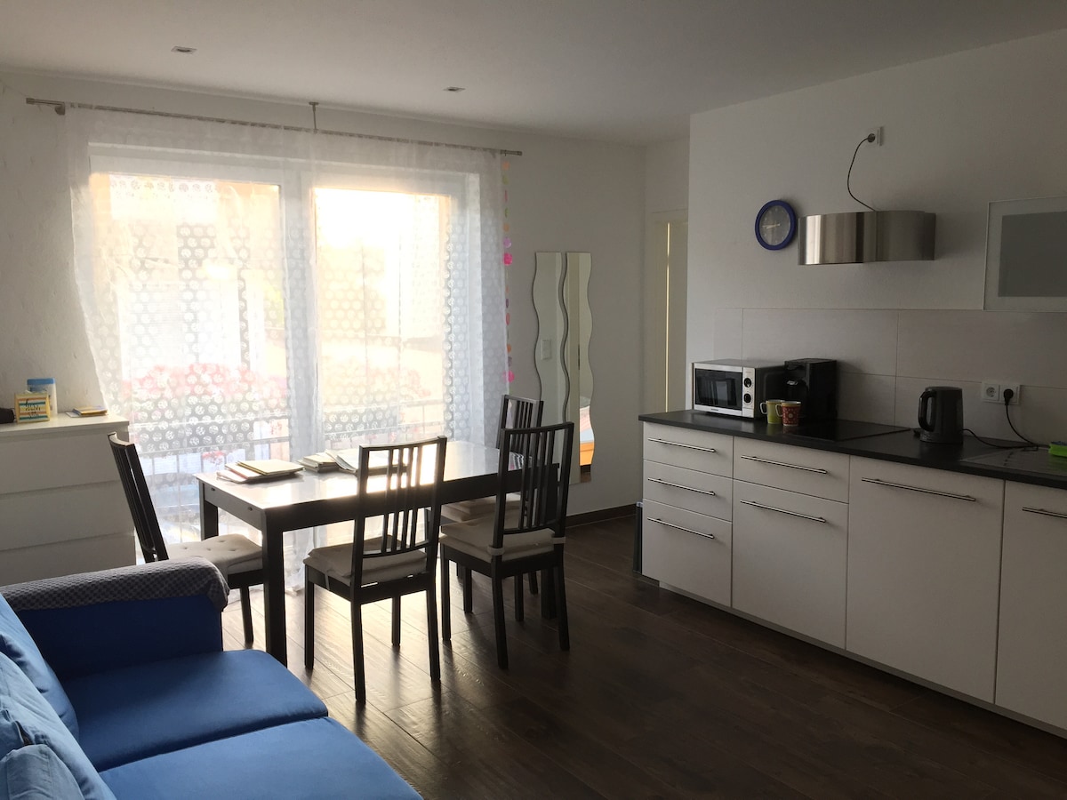 Húsgögnum íbúð, u.þ.b. 65 fm, tveggja manna hús, 1. hæð. Eldhús, baðherbergi með glugga og baðkari/sturtu, stofa, svefnherbergi með 180 cm hjónarúmi fyrir 2 manns og svefnsófa (140 cm) fyrir fullorðinn eða 1-2 börn Sameiginleg notkun á garðinum, þvottavél/þurrkara í kjallaranum, ókeypis bílastæði, rólegt íbúðarhverfi í D-Süd, ÖPVN tengt: S-Bahn stöðin Eller-Süd fótgangandi eða með strætisvagni (línur 723 /732). Paragisting, viðskiptaferðamenn og fjölskyldur